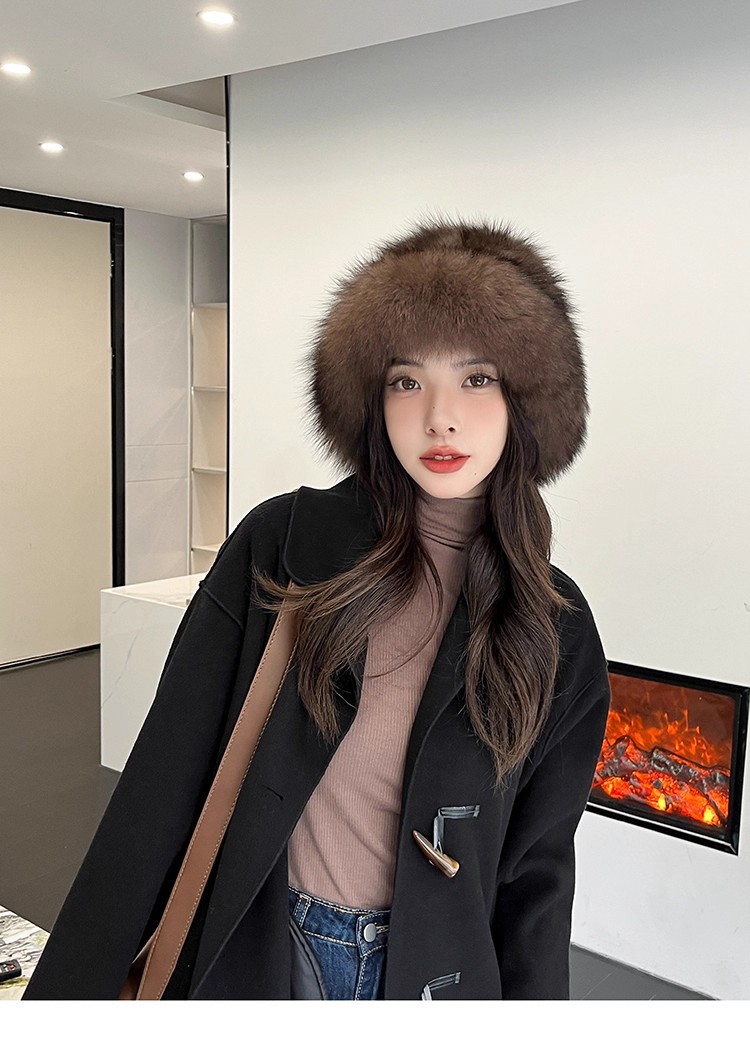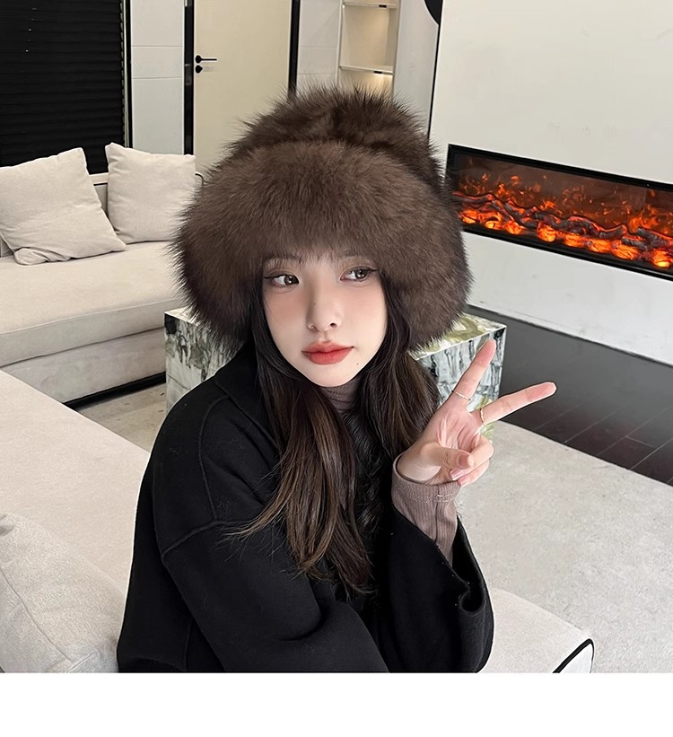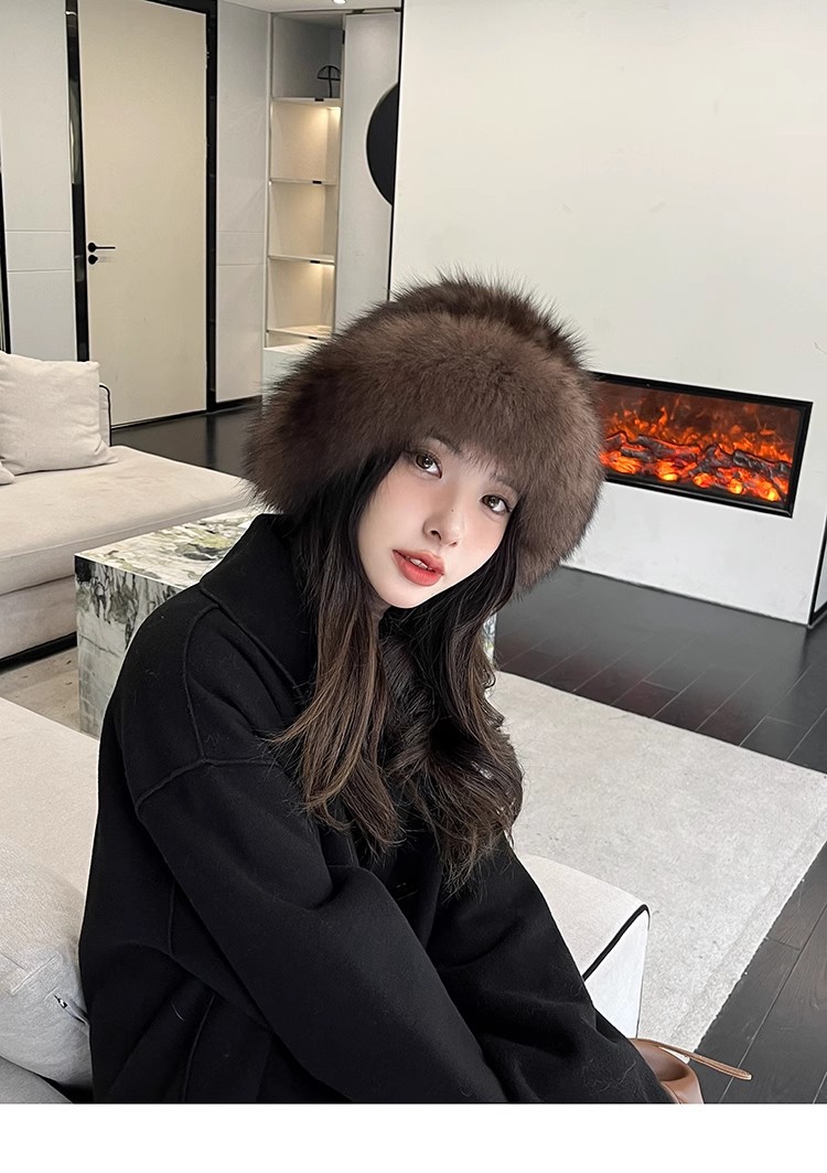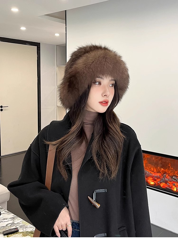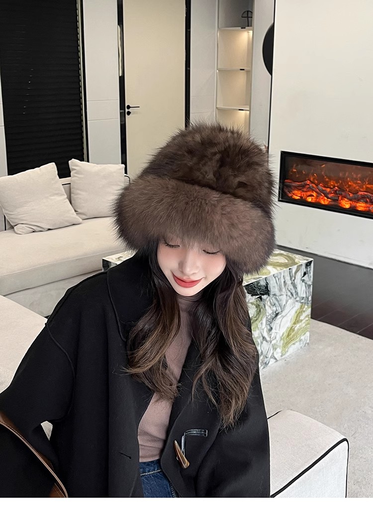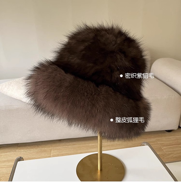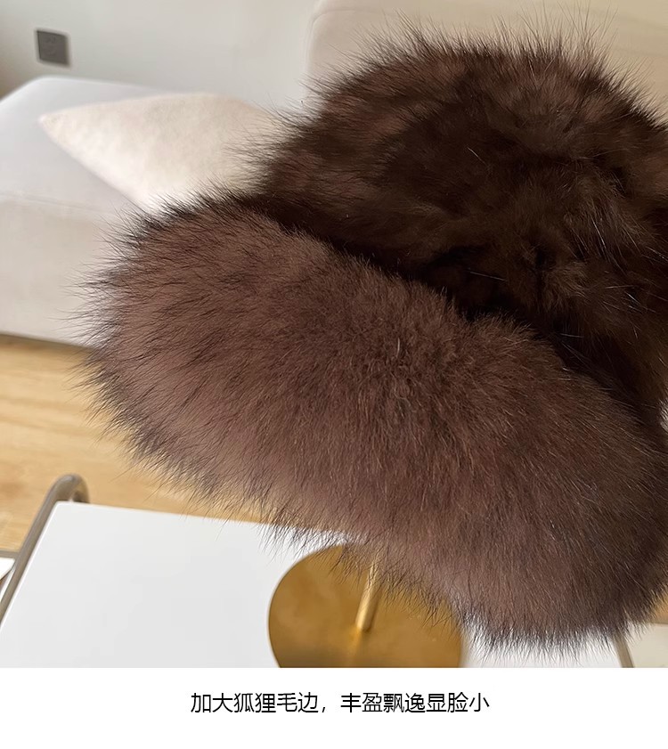 紫貂毛皮草帽子女秋冬保暖百搭水貂毛渔夫帽狐狸毛显脸小护耳盆帽