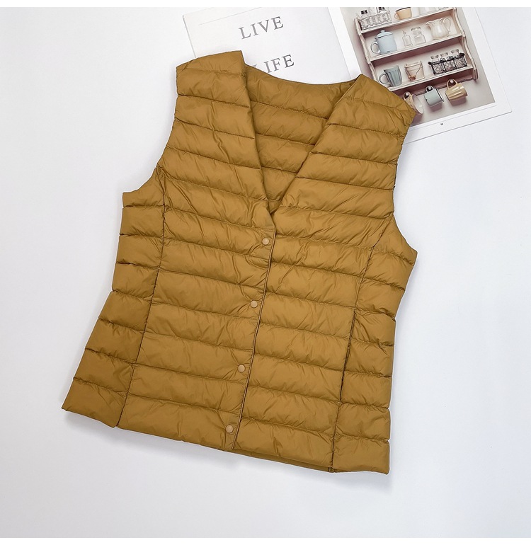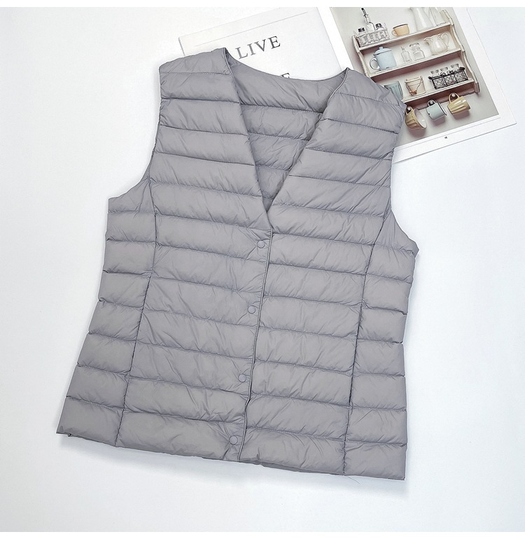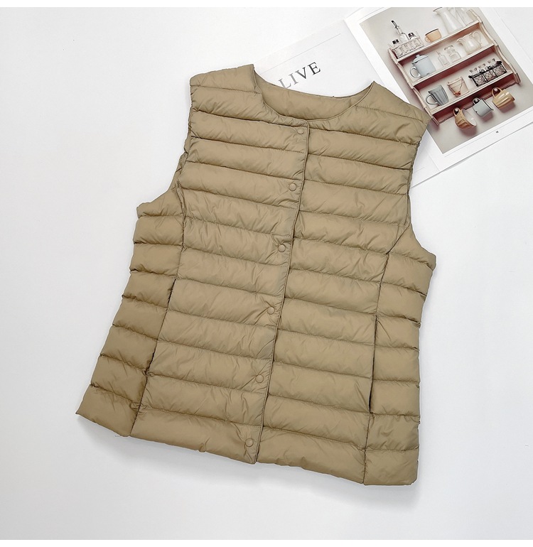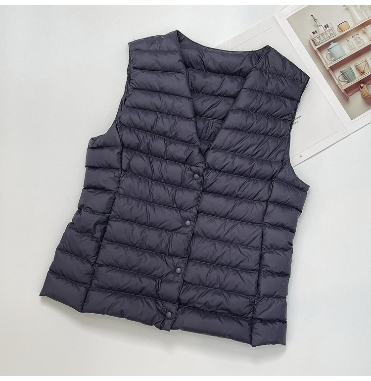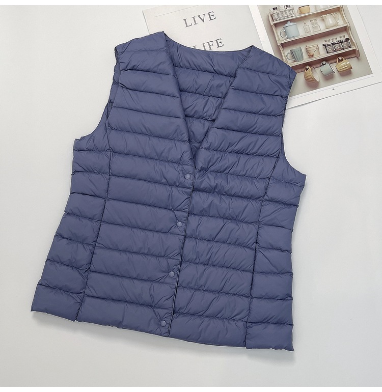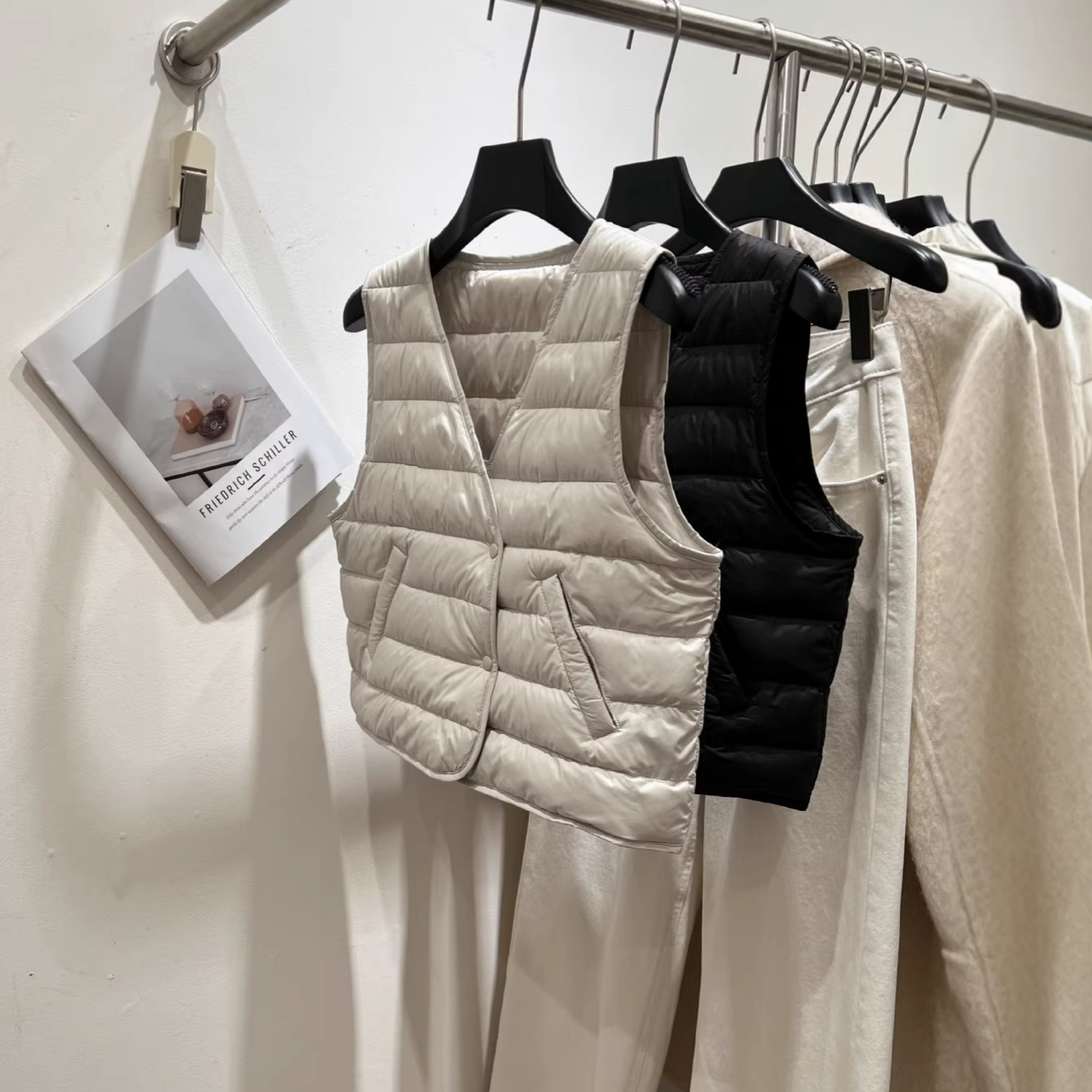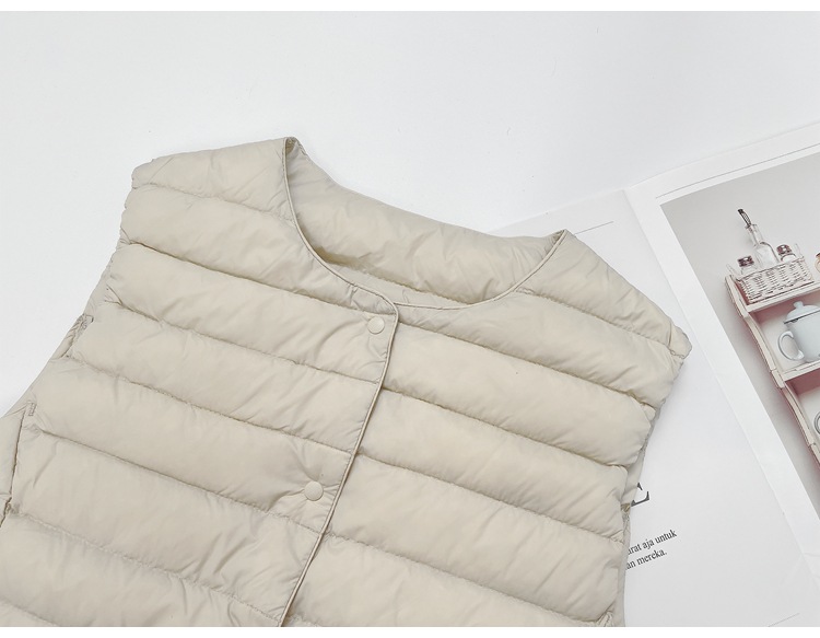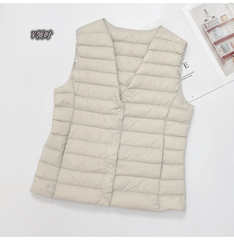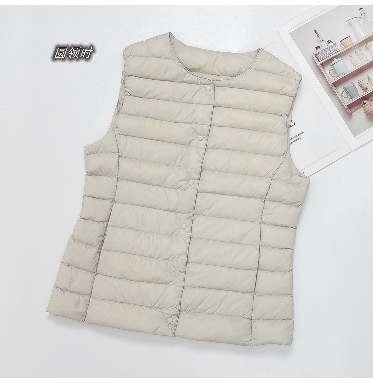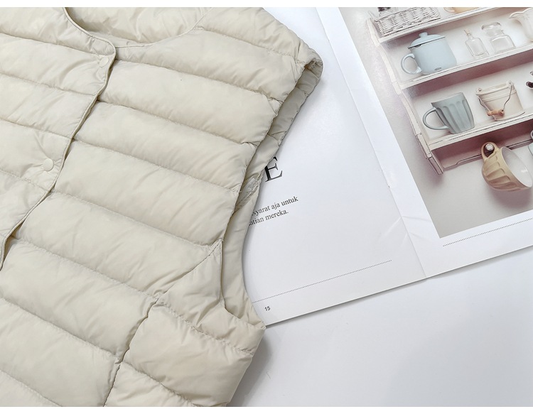 韓国への越境輸出、ライトダウンベスト、ホワイトダックダウンライナー、万能ノースリーブ薄手レイヤードインナーベスト