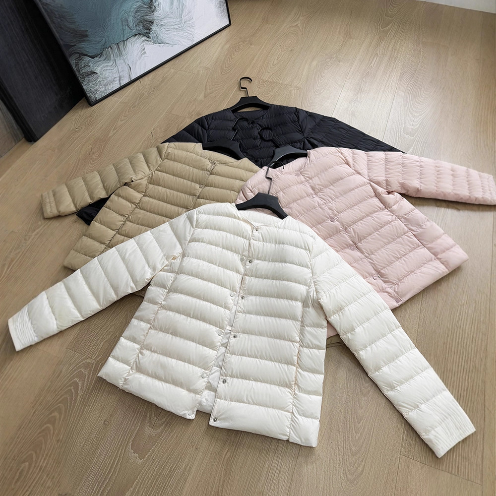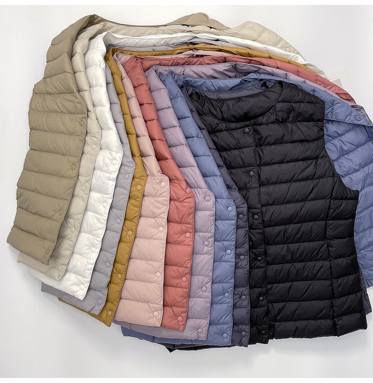 品牌跨境女士无领圆领轻薄羽绒长袖内胆2025冬季新款女式大衣内搭