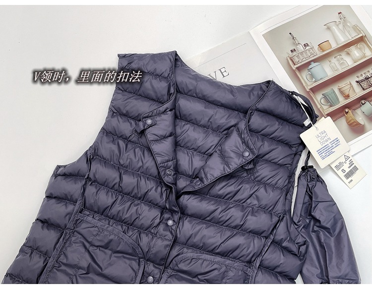 【圆领V领可变】90%白鸭绒女式轻薄羽绒马夹女士轻便内搭内胆马甲