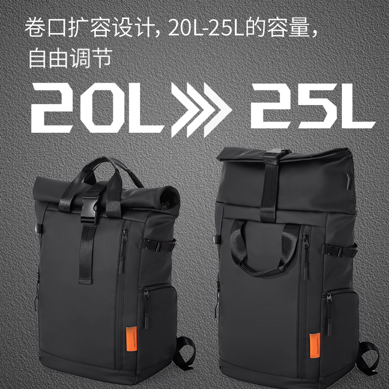 大容量折叠卷口双肩包男女同款潮流休闲背包户外旅行双肩包电脑包