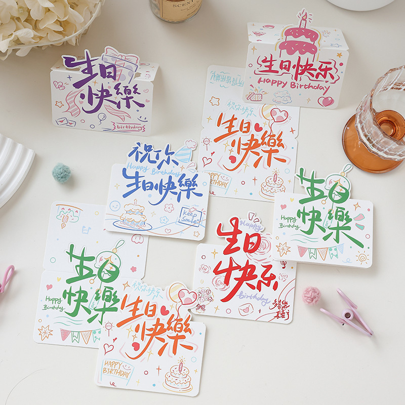新款生日快乐立体生日蛋糕创意贺卡花店生日祝福简约留言小卡片