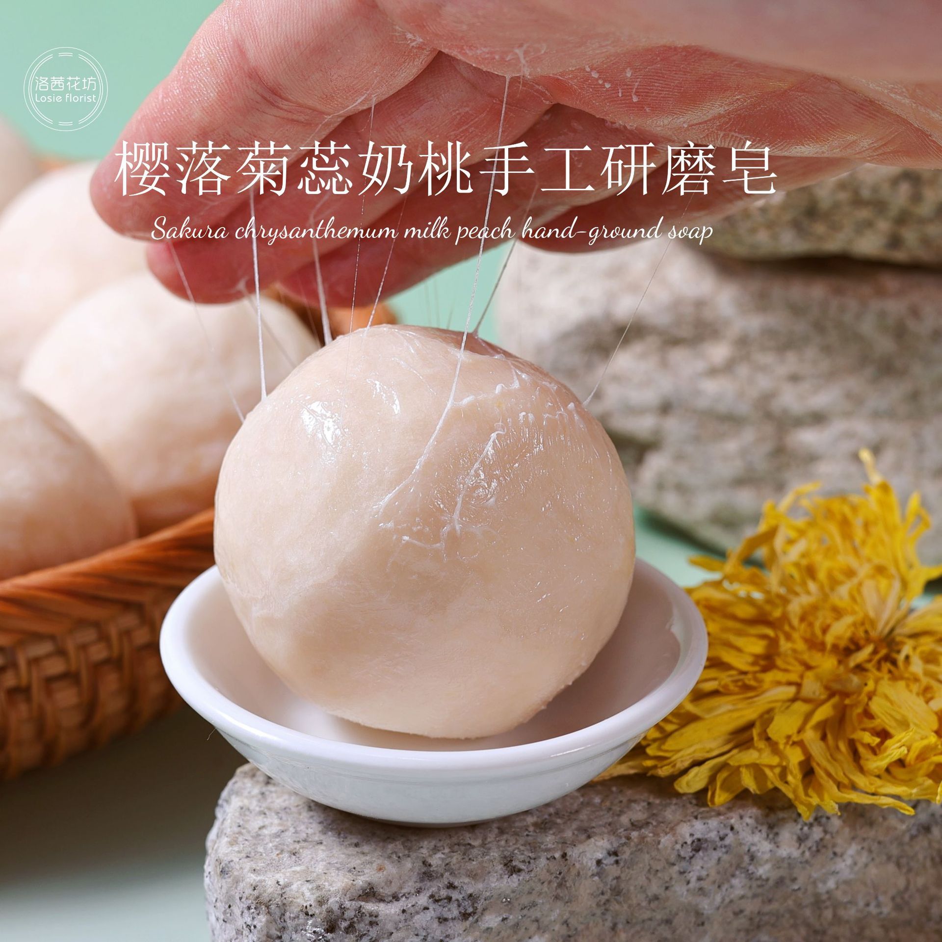 桜落菊蕊ミルクピーチ研磨石鹸 手作り石鹸 卸売 洗顔石鹸 ハーブエッセンシャルオイル石鹸 保湿 天然コールドプロセス