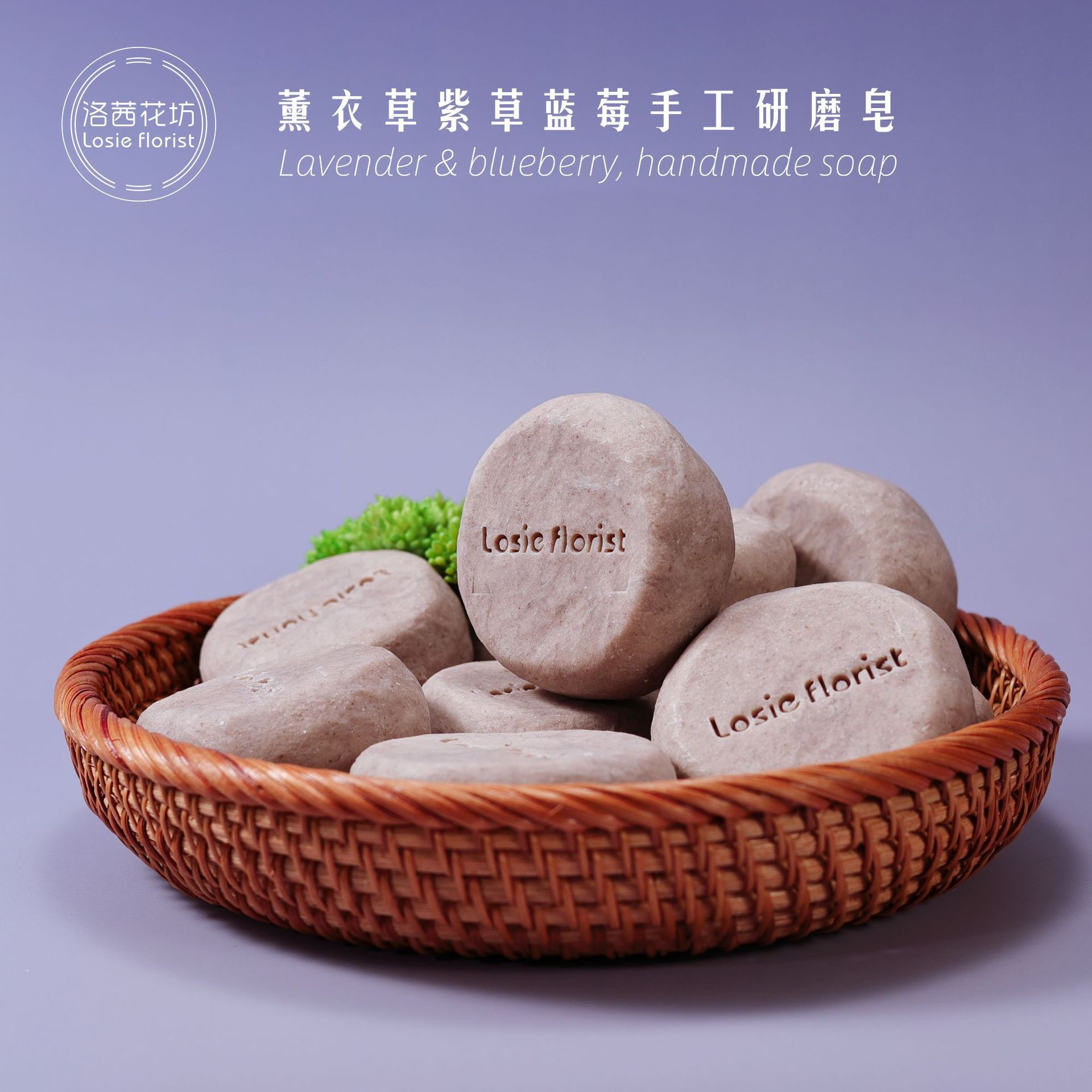 ラベンダー、紫草、ブルーベリーの研磨石鹸、コールドプロセス石鹸、手作り石鹸、卸売、洗顔石鹸、入浴用精油石鹸、純手作り