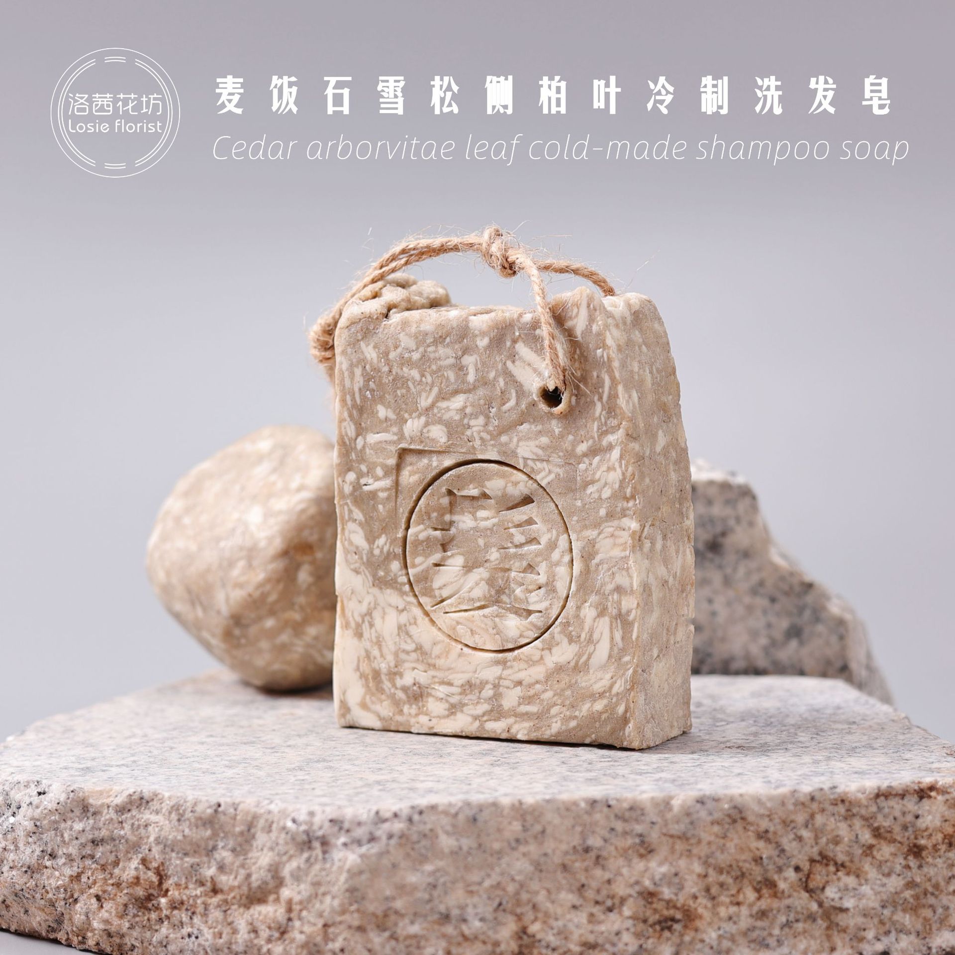 麦飯石、雪松、側柏の葉を使ったコールドプロセス洗髪石鹸、コールドプロセス石鹸、洗髪用石鹸、手作り石鹸、エッセンシャルオイル使用、純手作り