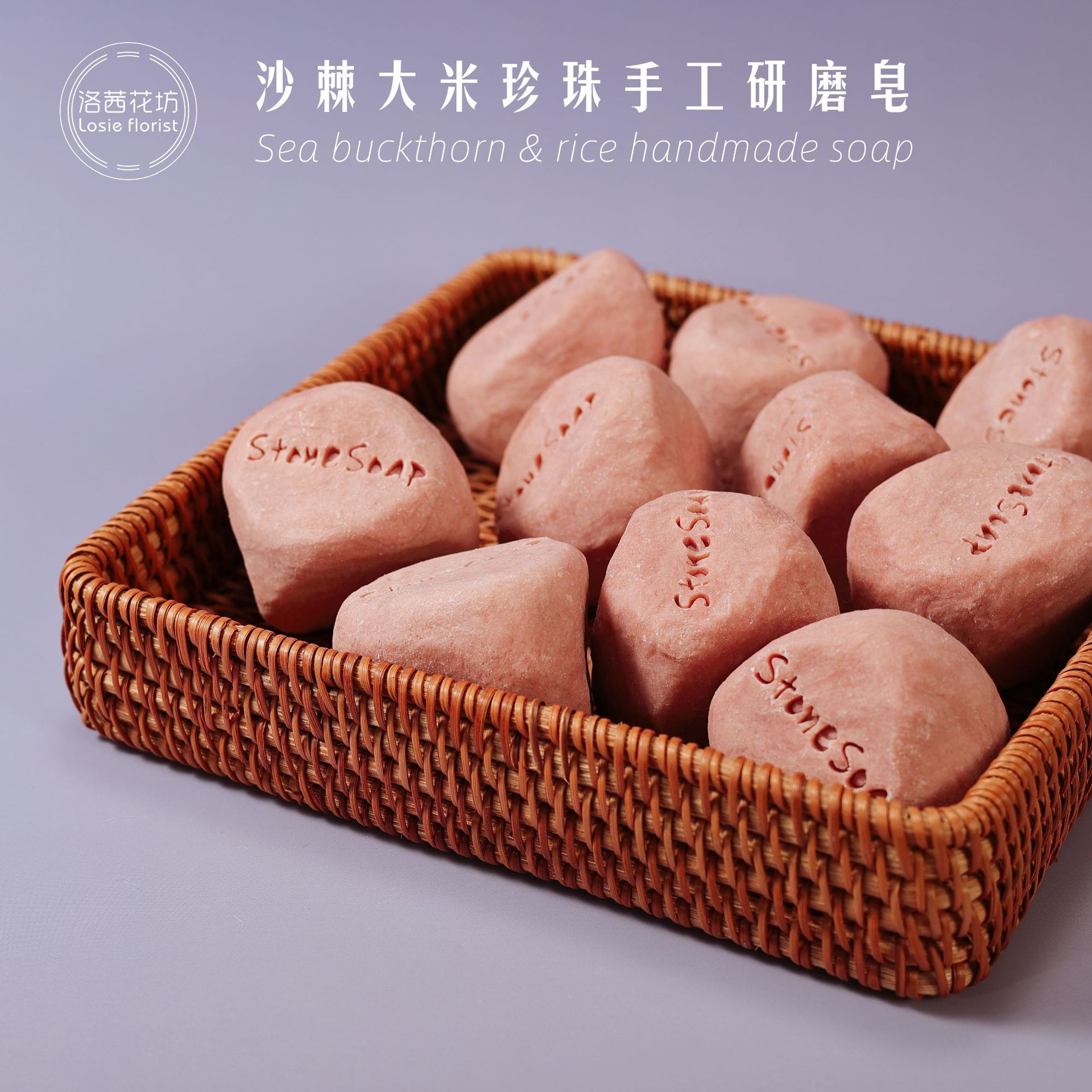 沙棘の米の真珠の手は石鹸の石鹸を研磨して洗顔します。