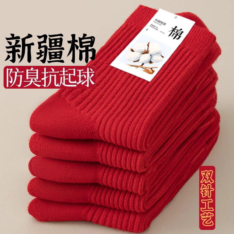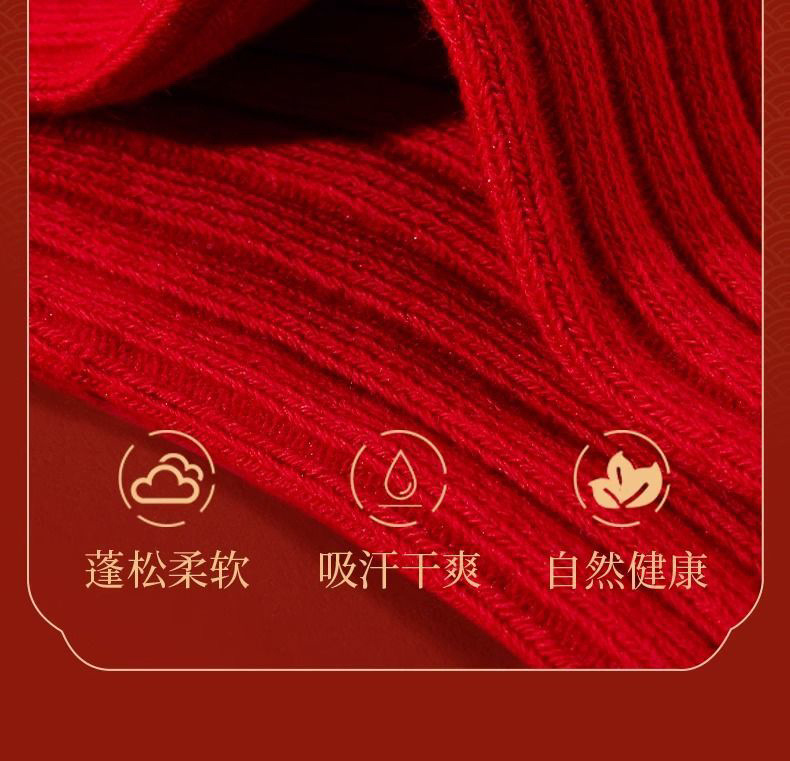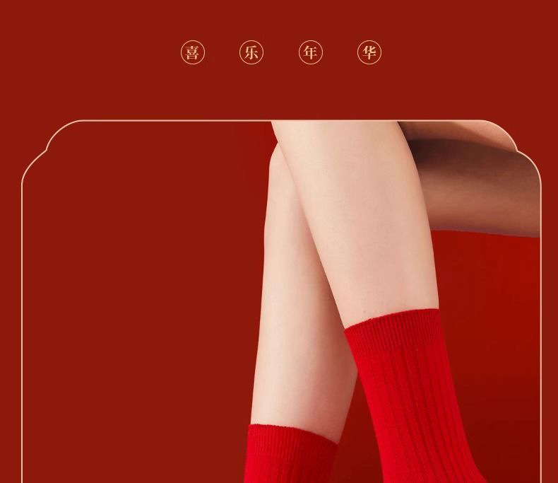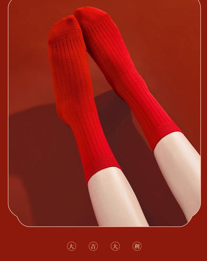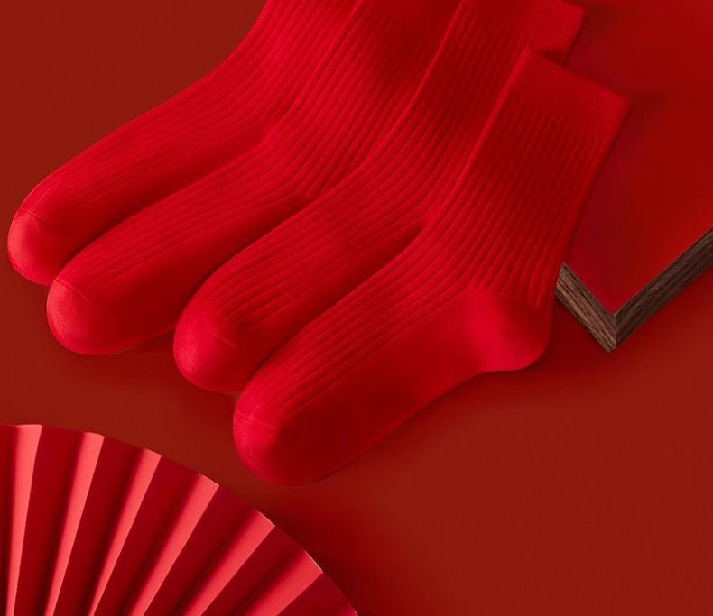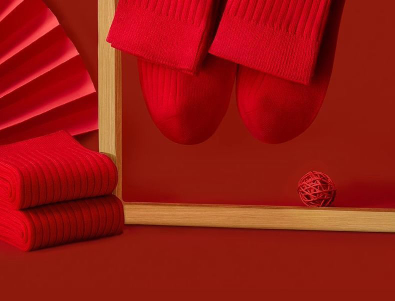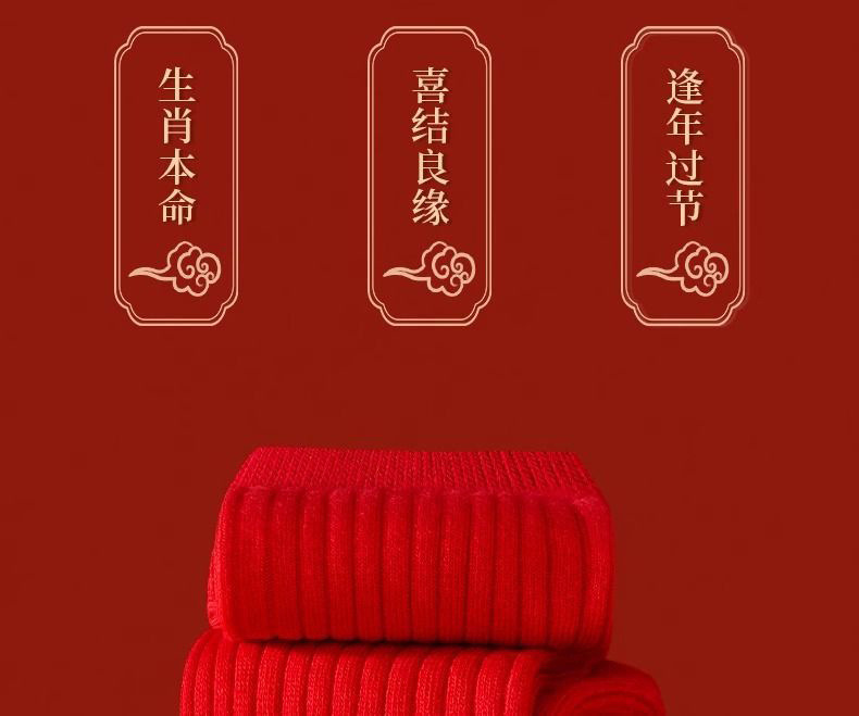 本命年红袜子女秋冬中筒袜透气舒适红色结婚新年棉袜子男棉袜批发