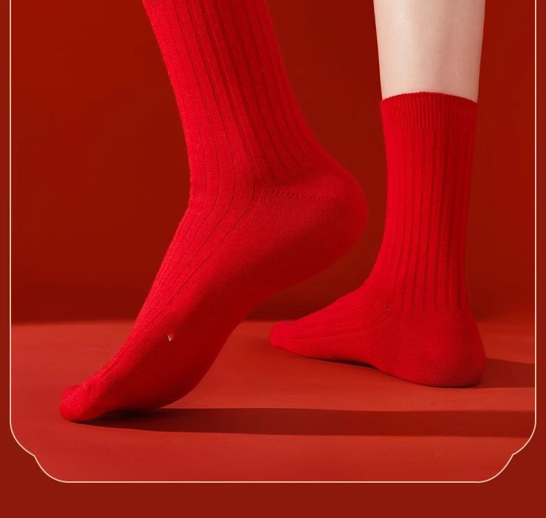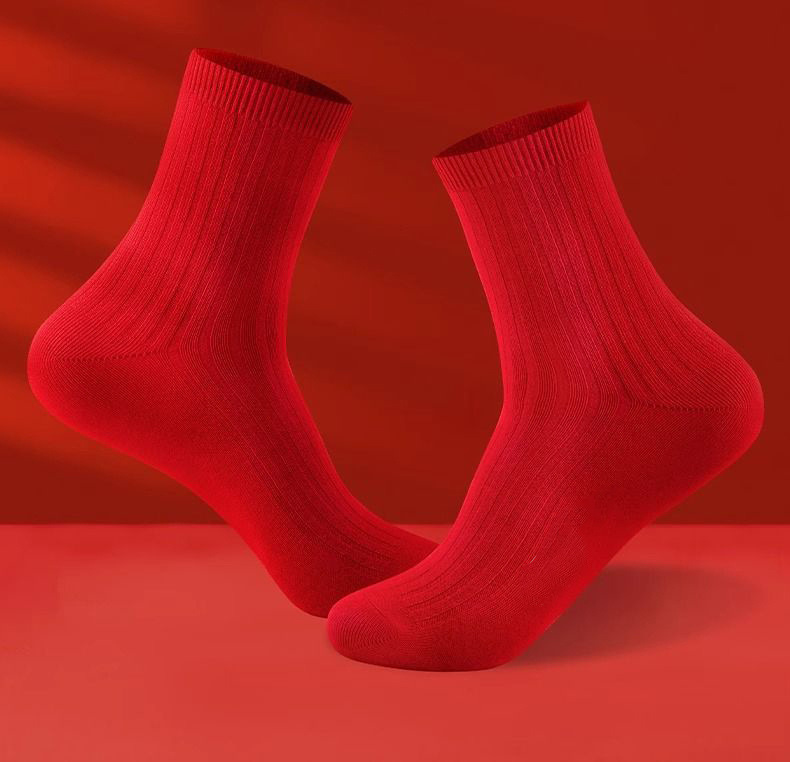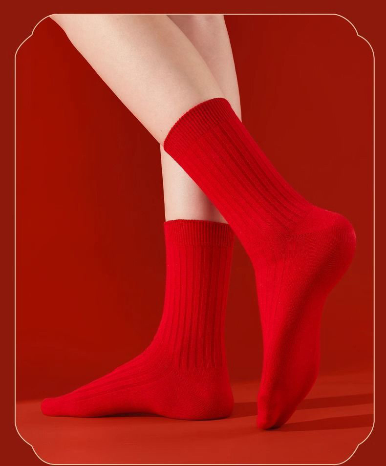 干支年赤い靴下綿靴下ミドル丈靴下ロングソックス新年結婚祝い靴下馬年靴下女性男性靴下