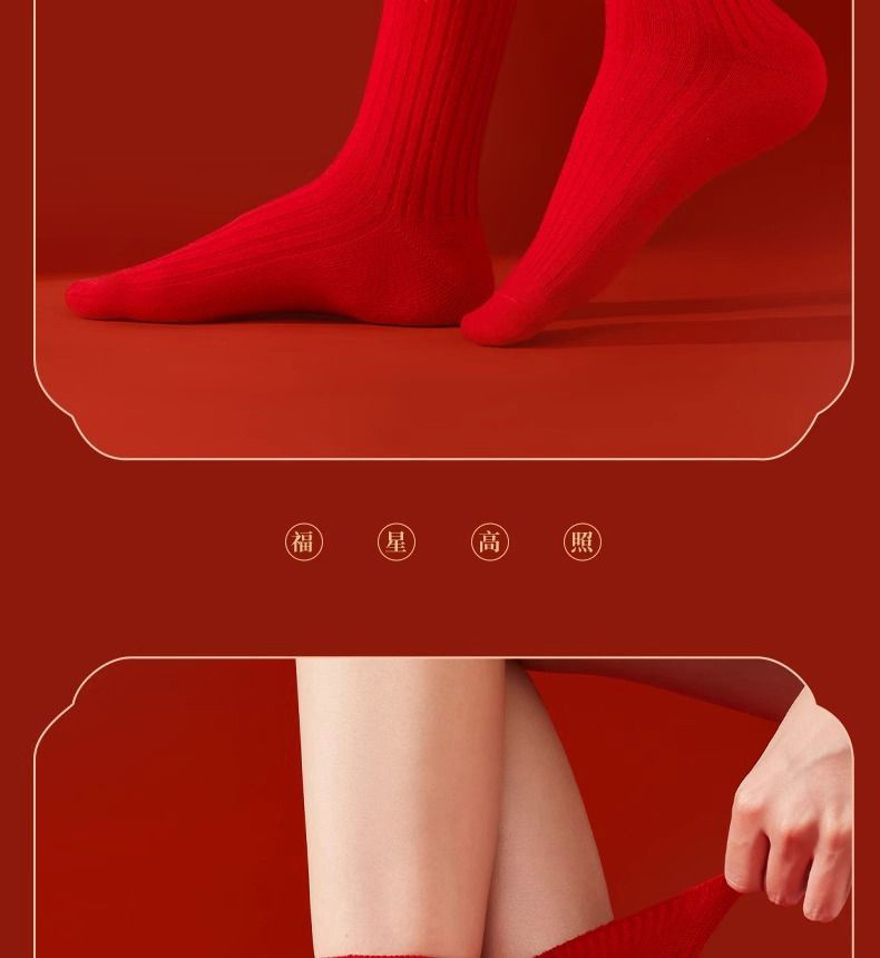 颜色 C-双针红袜子,大红袜【福字款】,双针红袜子,C-七星袜,C- 大红袜【福字款】
