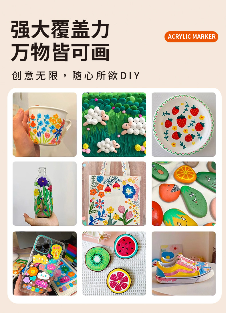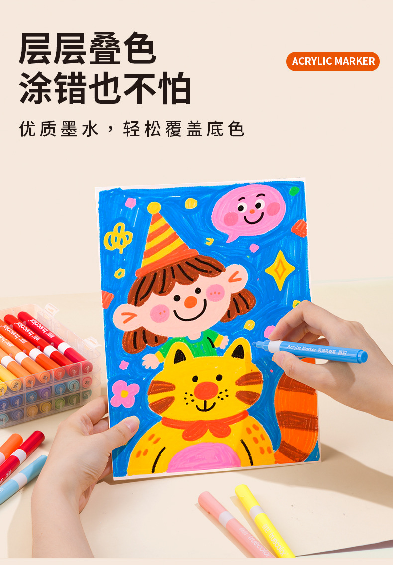 丙烯马克笔儿童无毒易可洗小学生美术水彩笔不透色软头可叠色画笔