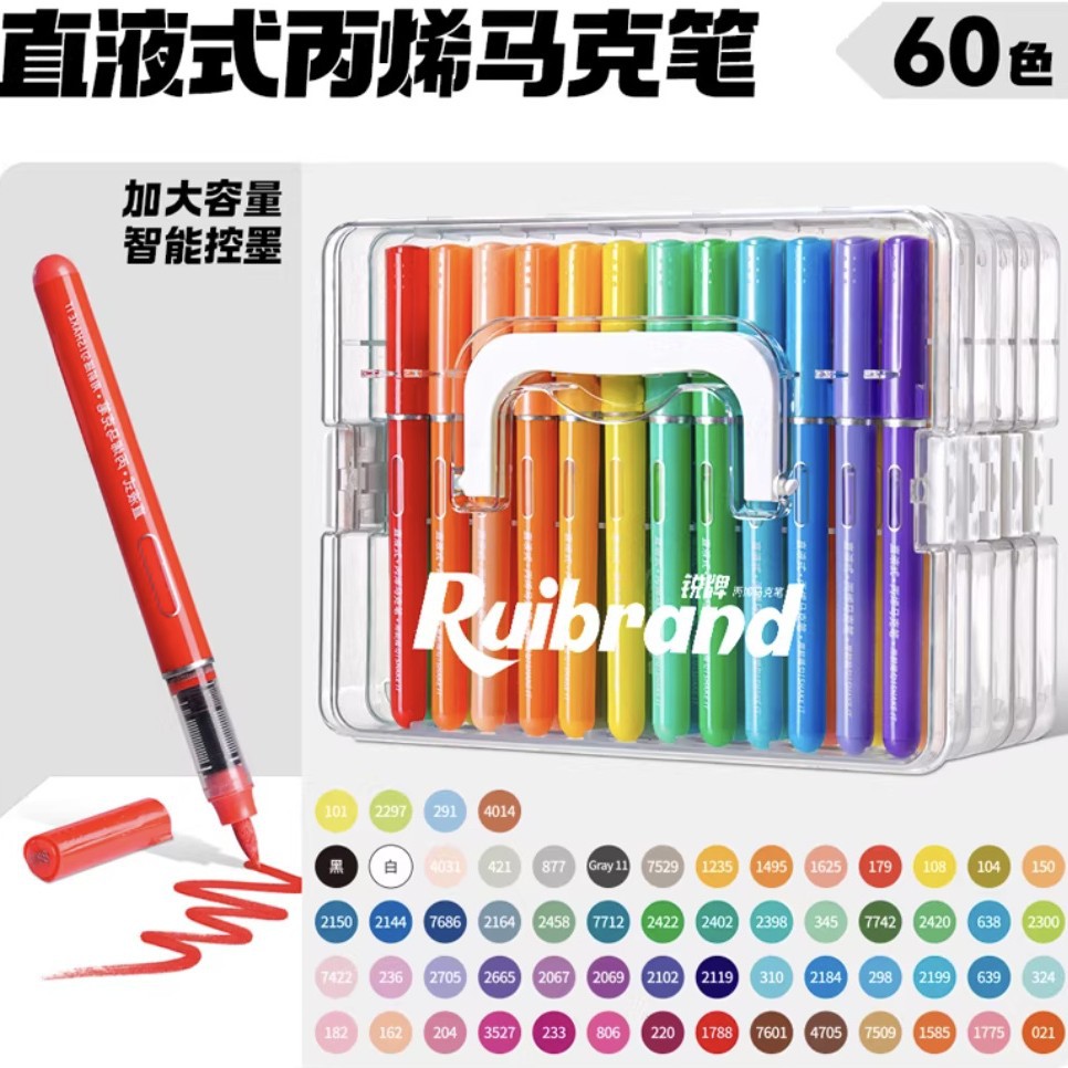 マーカーペン アクリル 重ね塗り可能 ソフトヘッド 48色 直液式 学生用アート 60色 子供用ペン インテリジェントインクコントロール