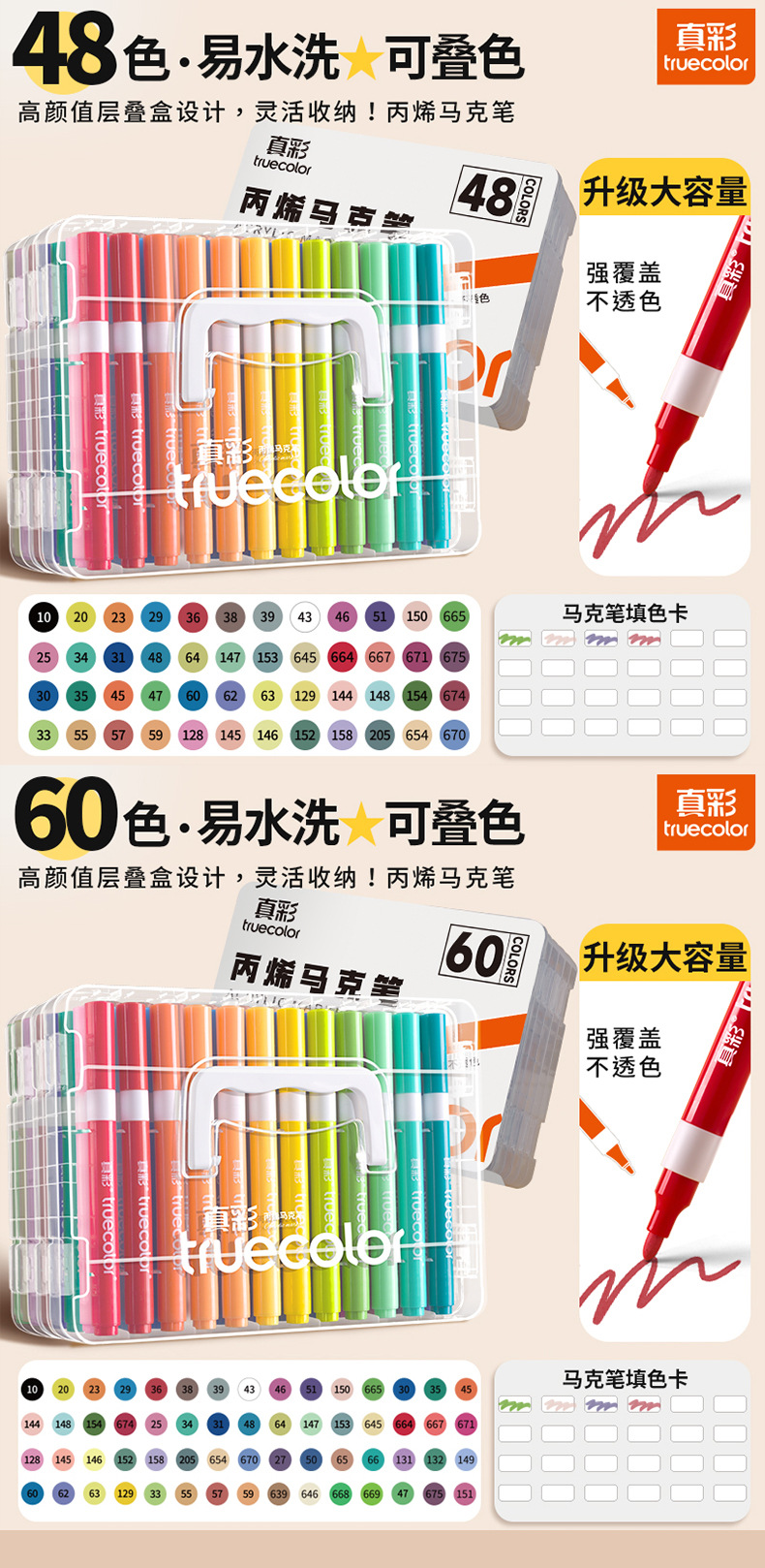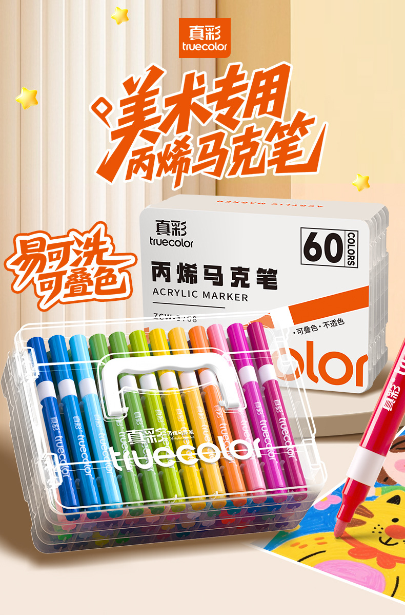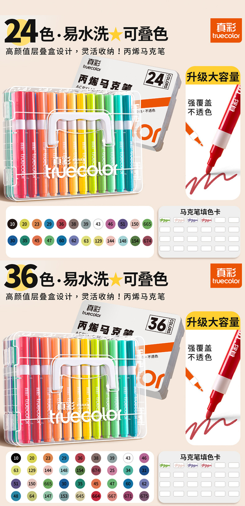 真彩丙烯马克笔可水洗小学生美术画笔不透色可叠色幼儿园绘画彩笔