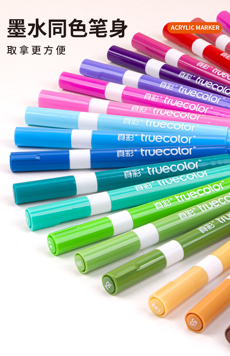 真彩丙烯马克笔学生美术专用儿童手抄报软头不透纸可叠色水洗彩笔