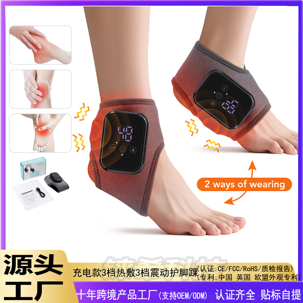 跨境新款电热护脚踝热敷脚腕按摩器充电款加热震动理疗脚部按摩仪
