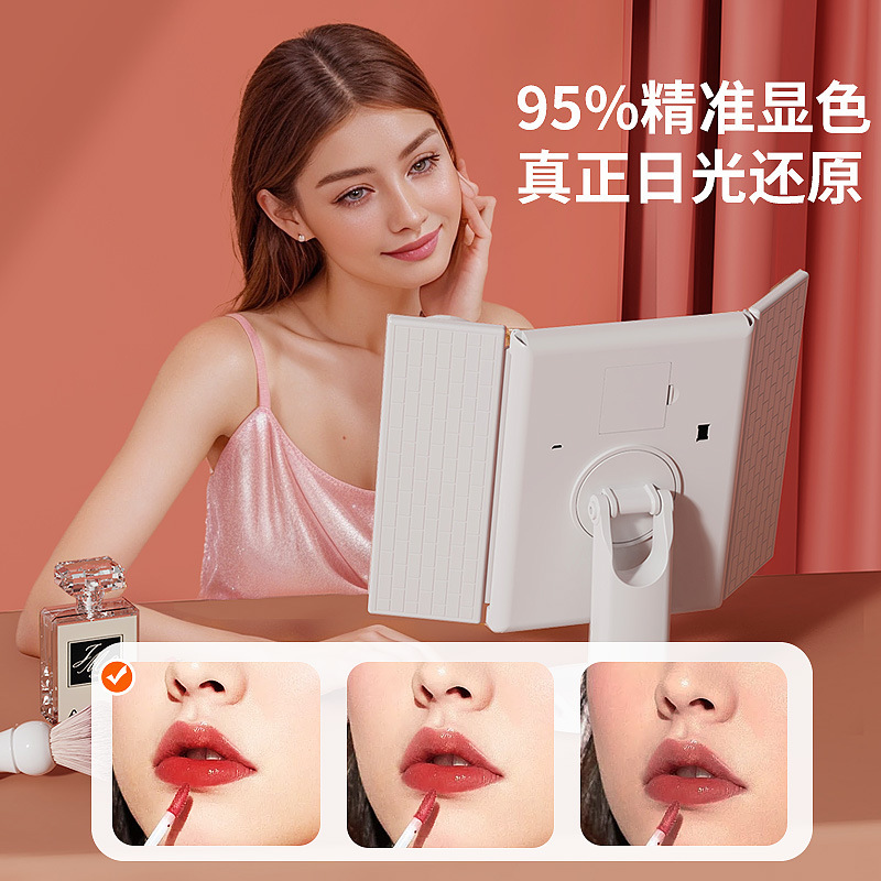 クロスボーダー三つ折led化粧鏡家庭用折り畳み回転デスクトップ美化粧補助灯貝殻鏡取り外し