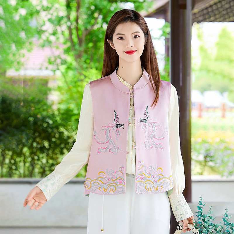 2025春の新中国式刺繍の両面にベストの上着を着ています。