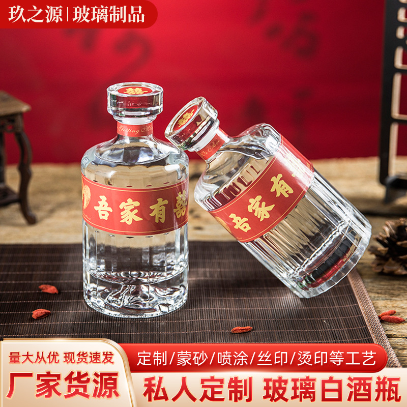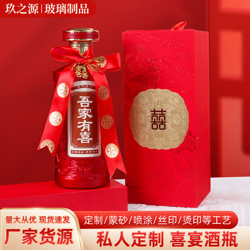 プライベートオーダー喜酒瓶宴会喜酒吾家喜紅ガラス酒瓶白酒瓶分装空瓶字