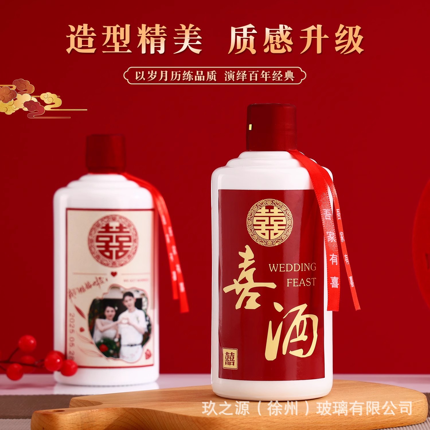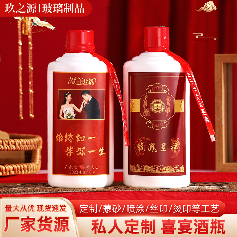 祝宴酒瓶500ミリリットルガラス白酒瓶スポット卸売り個人印刷写真結婚喜酒瓶セット