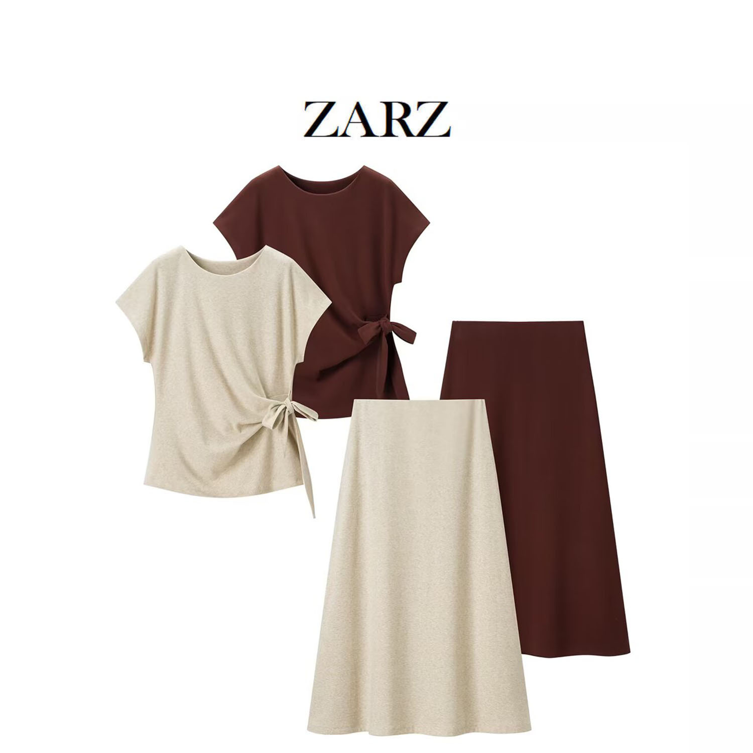 ZARZ自作欧米風新型女装クラシック半袖ニット上着平針ミニスカート6236009