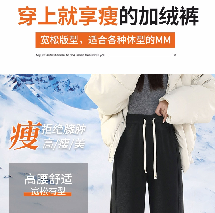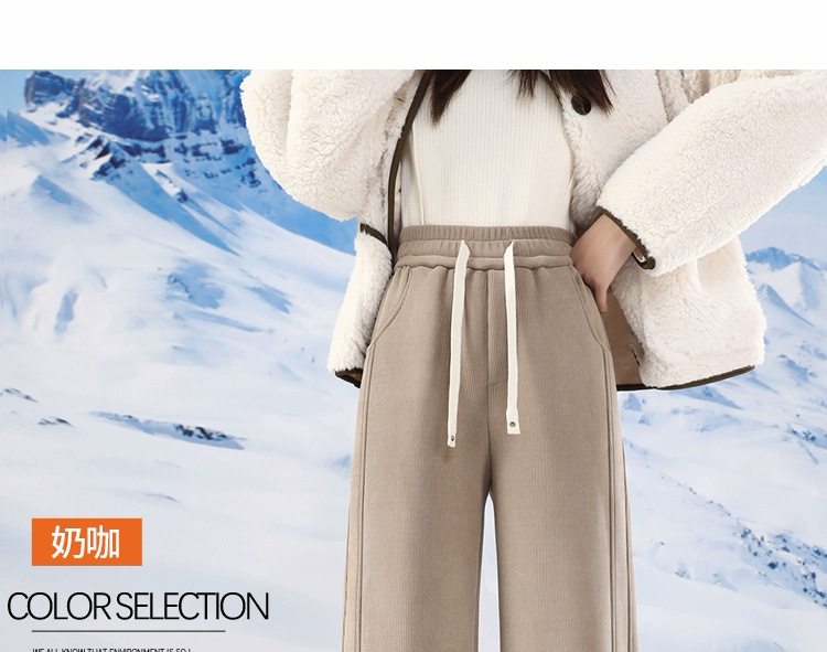 阔腿裤女冬季加绒加厚运动裤2025新款直筒裤子羊羔绒外穿保暖棉裤