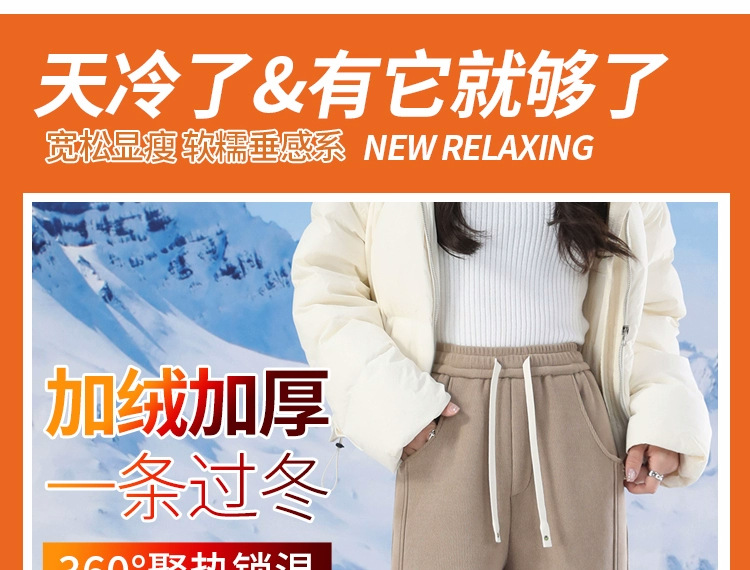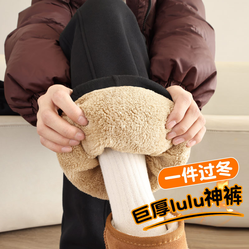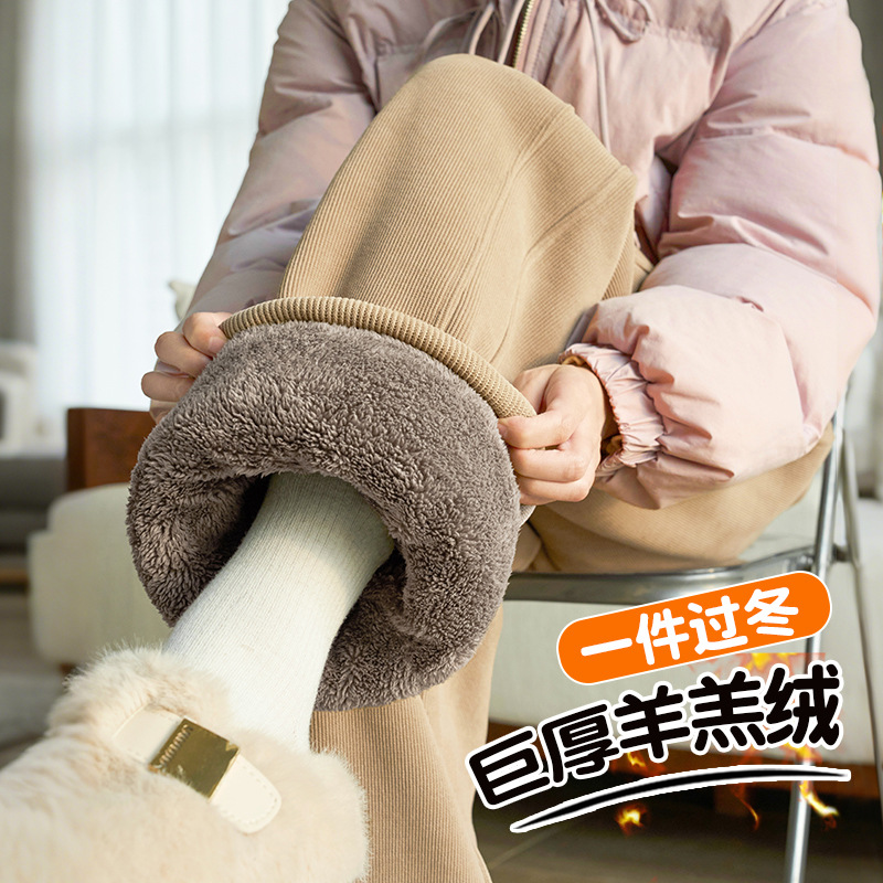 加绒裤子女冬季2025新款加厚羊羔绒外穿防风保暖棉裤直筒裤阔腿裤