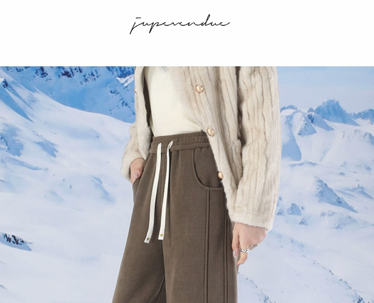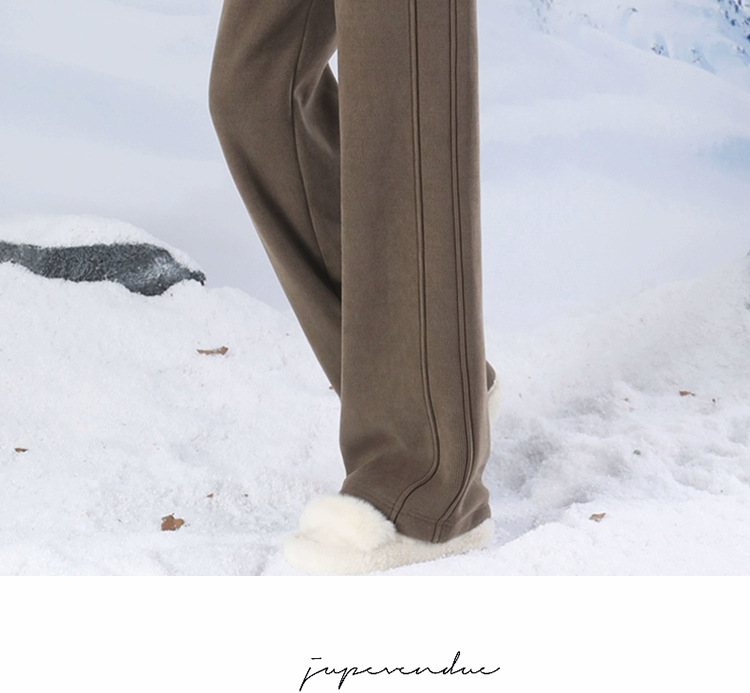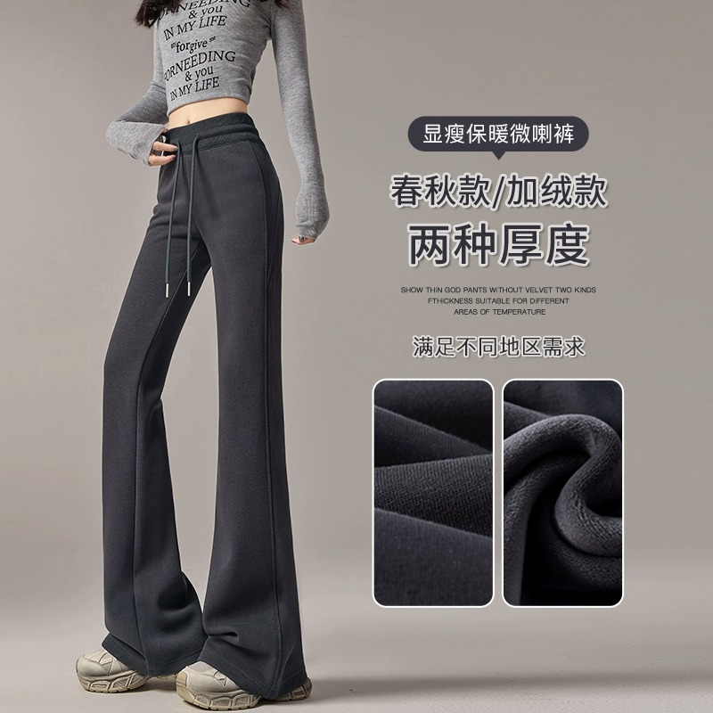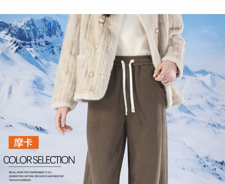 ベルベットのバナナのズボンの女性は冬の2024の新しい厚手の子羊のベルベットのズボンの狭いバージョンのストレートなスポーツのカジュアルなズボンを厚くします