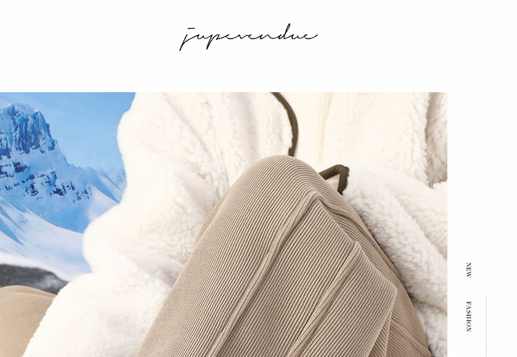 コーデュロイとベルベットのワイドパンツの女性秋冬2024の外に羊のベルベットの綿のズボンを着て、冬のバナナのズボンを厚くします
