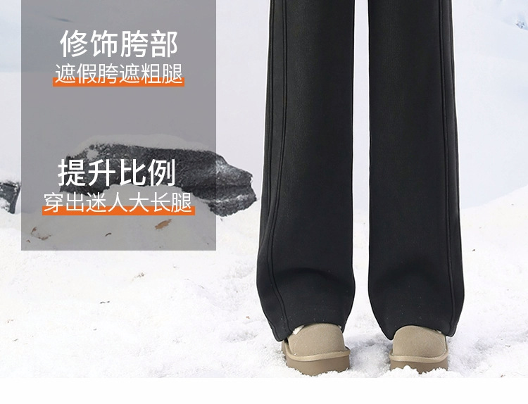 黑色加绒加厚羊羔绒裤子女外穿防风直筒香蕉裤高腰显瘦窄版阔腿裤