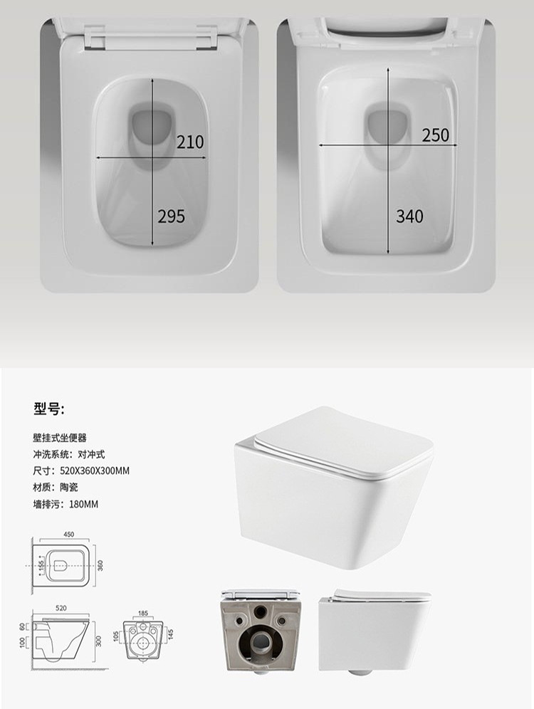 外贸跨境挂墙坐便器酒店工程卫生间静音墙排马桶小户型壁挂马桶