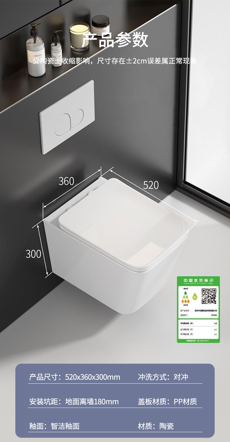 壁挂式马桶强劲对冲式普通马桶内嵌水箱酒店挂墙式坐便器出口认证