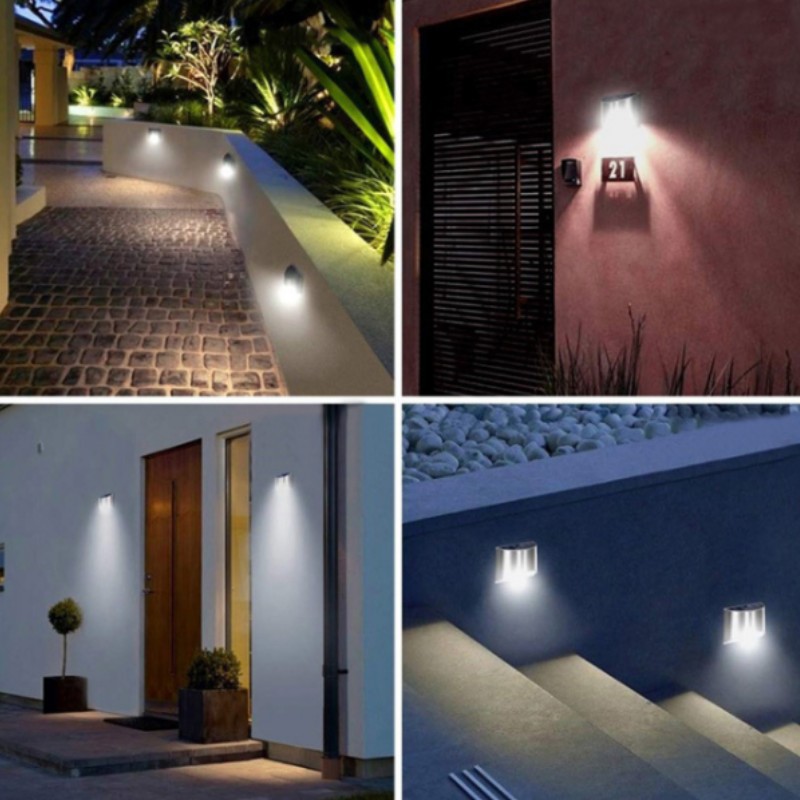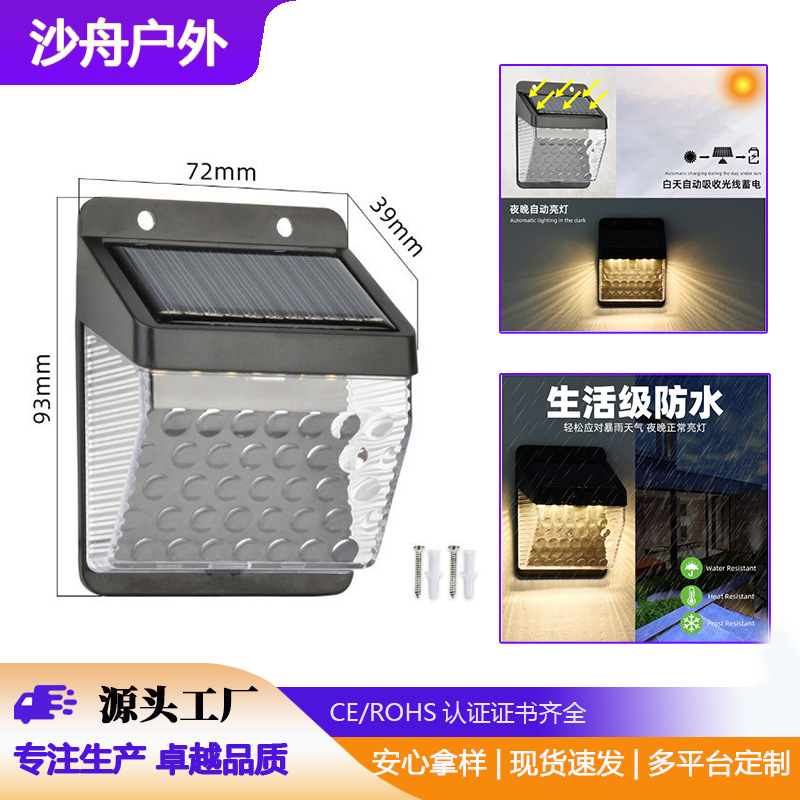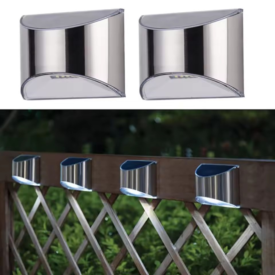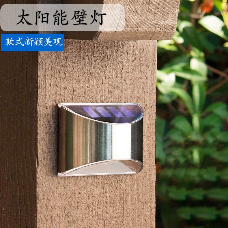 跨境太阳能感应壁灯户外防水花园庭院感应不锈钢壁灯台阶灯篱笆灯