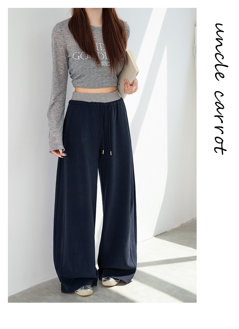 萝卜大叔撞色休闲运动裤女春季2026新款高腰显瘦小个子阔腿卫裤子