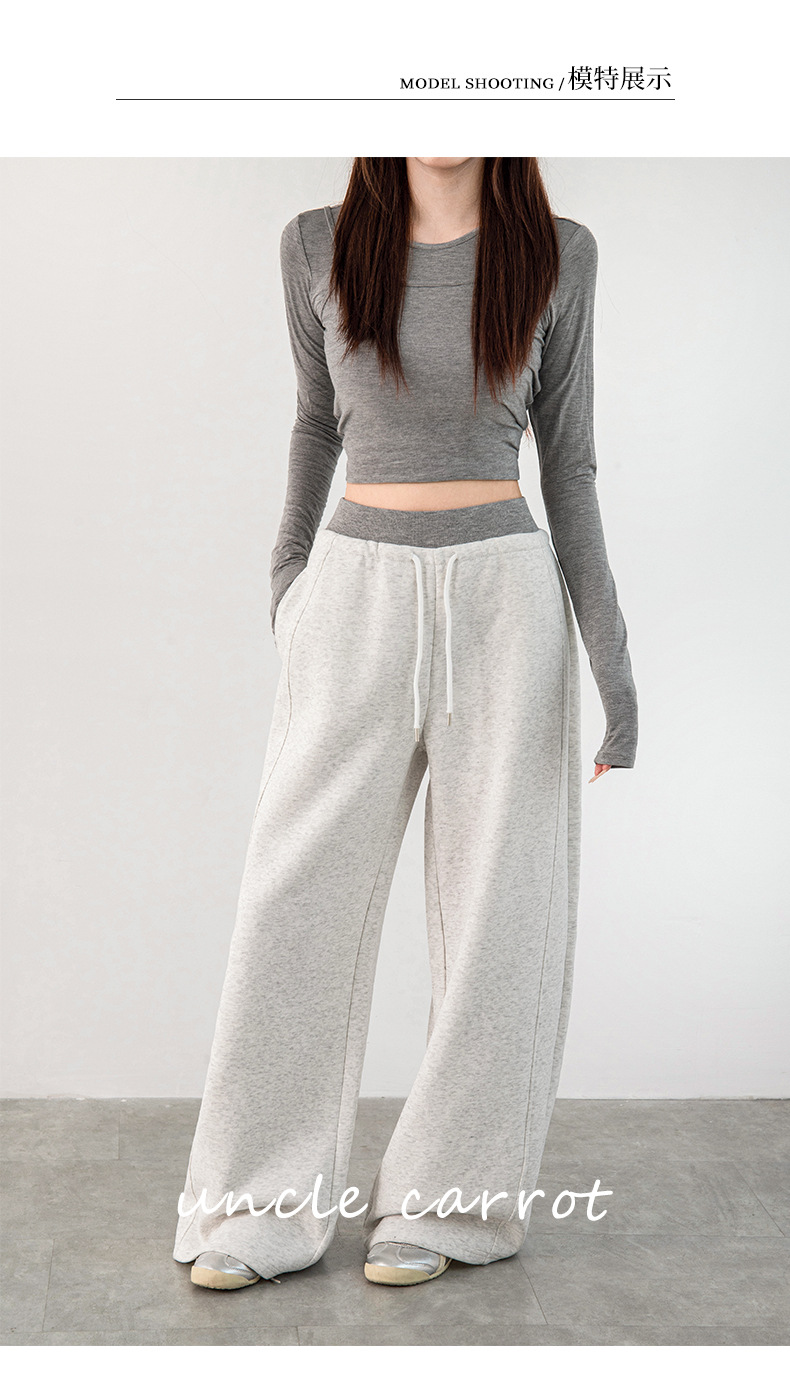 萝卜大叔双口袋系带直筒裤女2026春季时尚百搭休闲黑色阔腿运动裤