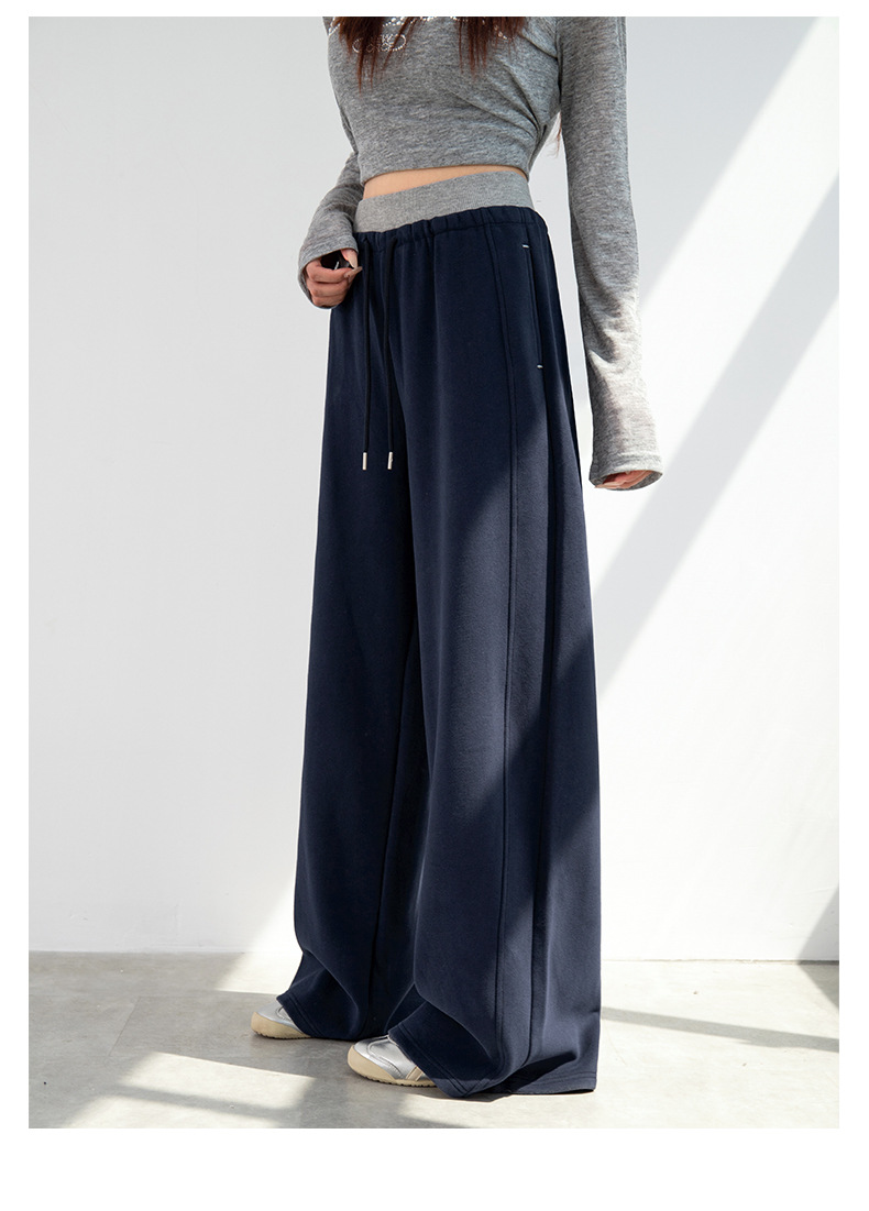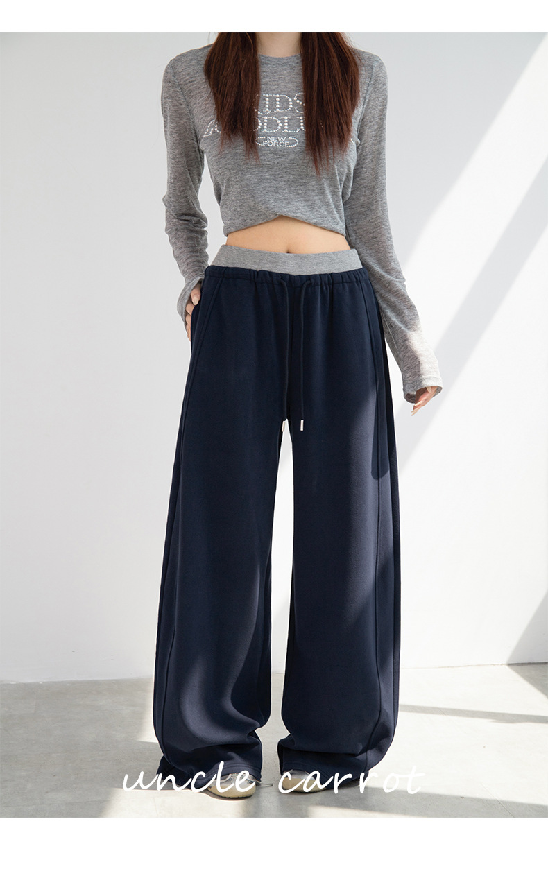 藏青色运动裤女春季2026新款宽松垂感高腰阔腿裤小个子直筒卫裤子