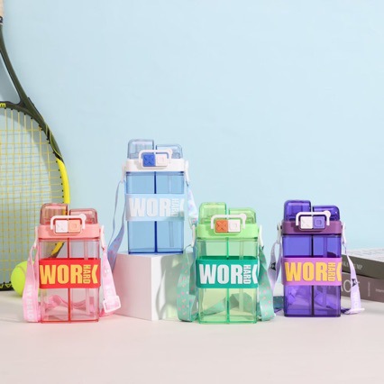 角型コップ男女高颜値ダブルドリンクストロー付きプラスチック水筒子供夏小学生パンクプラスチック水