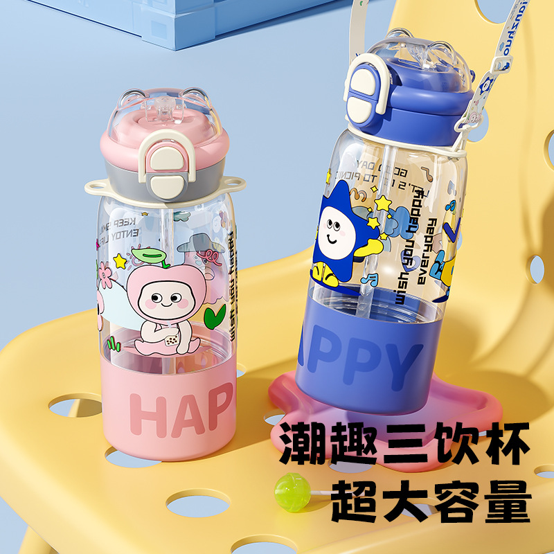 大容量子供用コップ夏新型2024コップ小学生通学専用女子ストローコップ二重飲みコップ