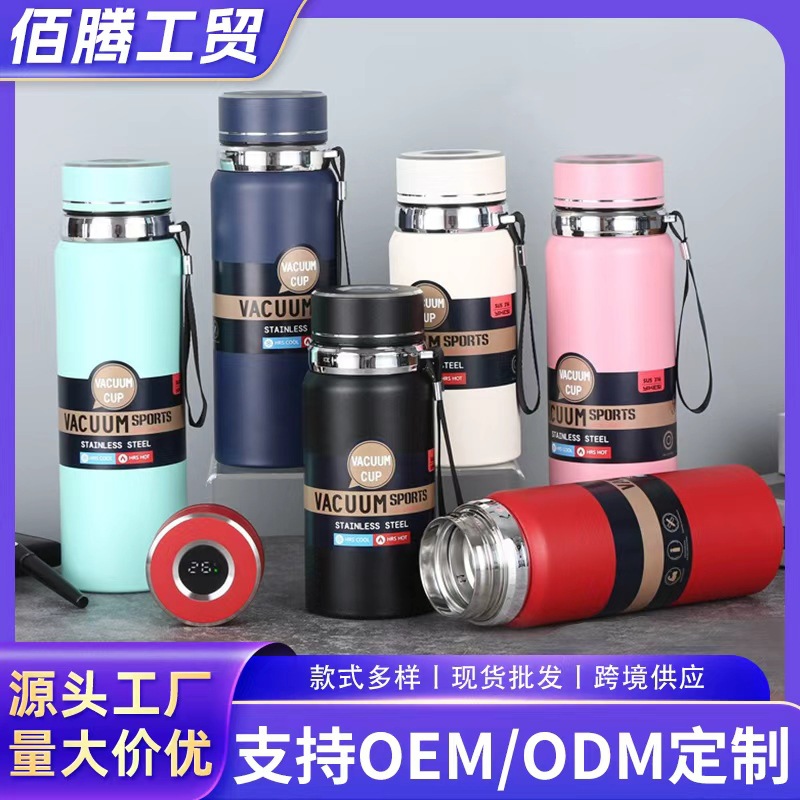 新款智能显温运动水壶大容量316不锈钢保温杯便携商务礼品杯批发
