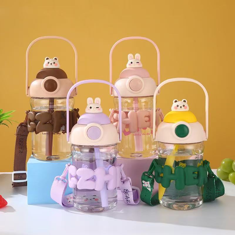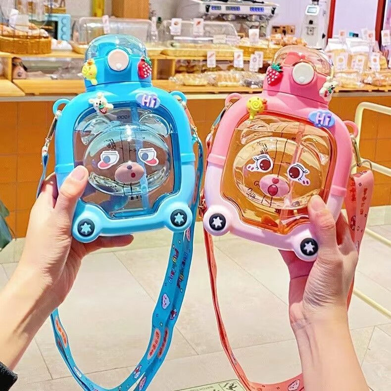 子供用ストロー付き水筒 プラスチック製カップ マジックベア 可愛い 大容量 漫画風 高品質 ベルト付き 携帯用 水筒メーカー
