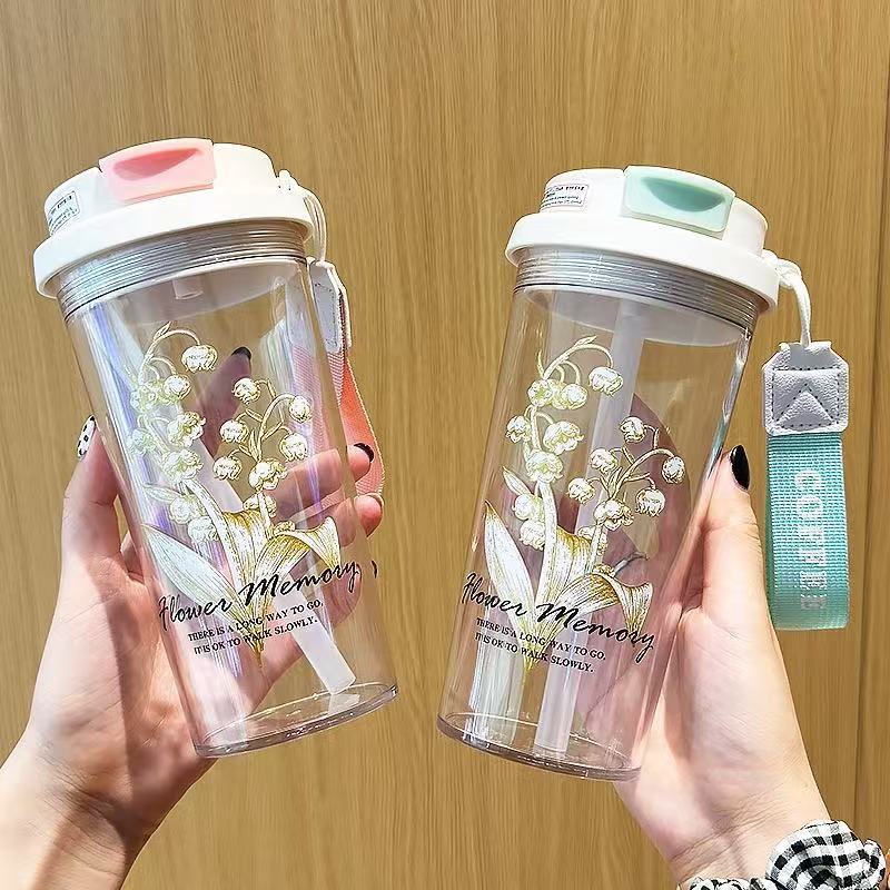 高颜値ストローカップ大容量携帯ストラッププラスチックカップ女子学生カップ学生カップカスタムロゴ