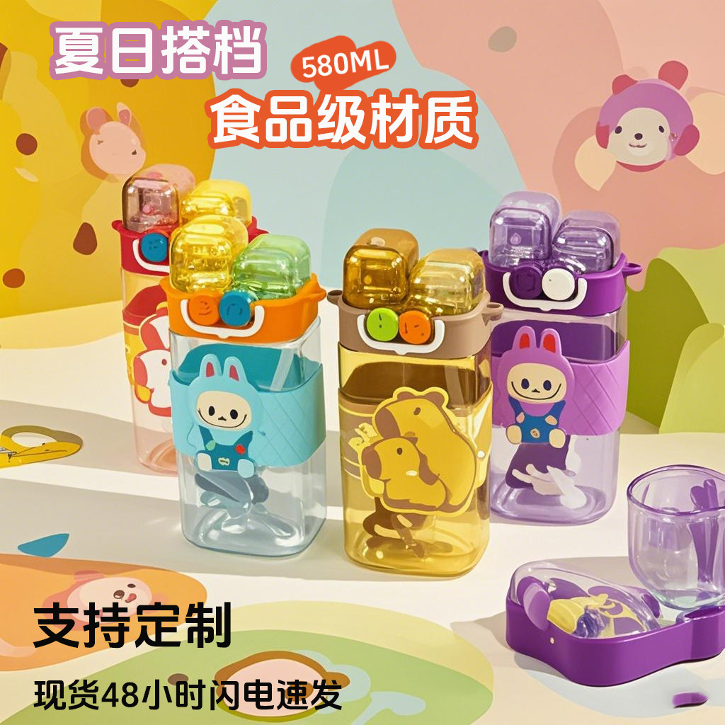 国境を越えたホットシリコン漫画スクエアカップ夏のインターネット有名人カピバラ学生ポータブル子供の漫画ダブルドリンクカップ