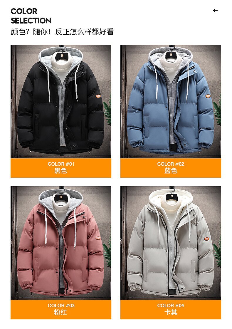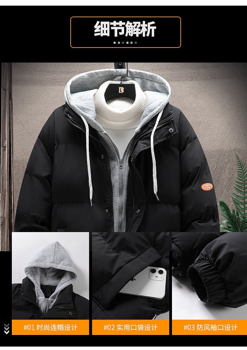 B09新款棉衣爆款假两件韩版连帽加厚棉服外套上衣运动休闲外套男