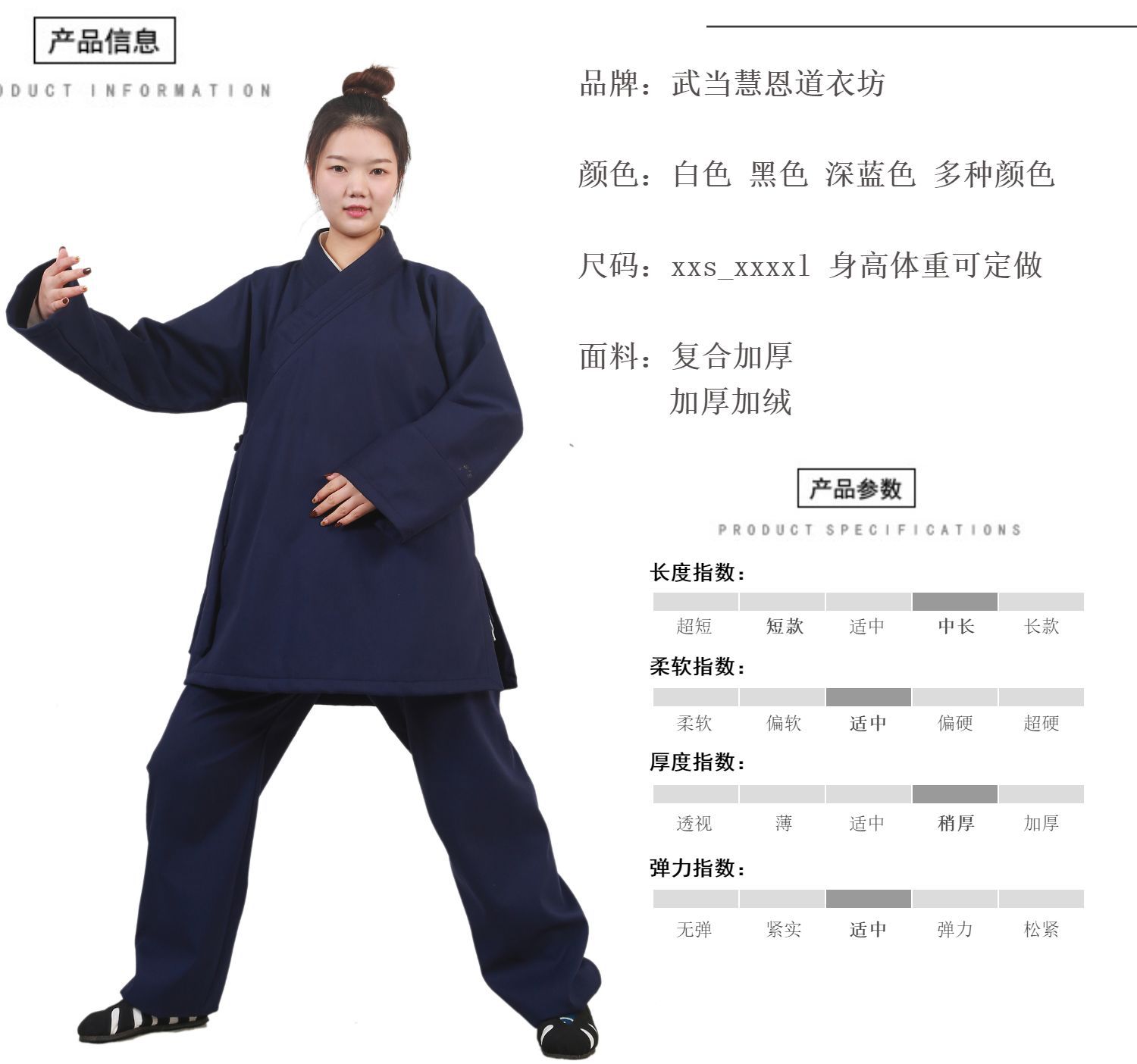 颜色 春秋加厚款短袍上衣(拍下备注颜色),白色短袍上衣+裤子 (春秋加厚款),黑色短袍上衣+裤子 (春秋加厚款),深蓝色短袍上衣+裤子 (春秋加厚款),白色中长袍上衣+裤子 (春秋加厚款),黑色中长袍上衣+裤子 (春秋加厚款),深蓝色中长袍上衣+裤子 (春秋加厚款),白色短袍上衣+裤子 (秋冬加绒款),黑色短袍上衣+裤子 (秋冬加绒款),深蓝色短袍上衣+裤子 (秋冬加绒款),白色中长袍上衣+裤子 (秋冬加绒款),黑色中长袍上衣+裤子 (秋冬加绒款),深蓝色中长袍上衣+裤子 (秋冬加绒款),春秋加厚款中长袍上衣(拍下备注颜色),秋冬加绒款短袍上衣(拍下备注颜色),秋冬加绒款中长袍上衣(拍下备注颜色),身高 体重 颜色 尺码可定制