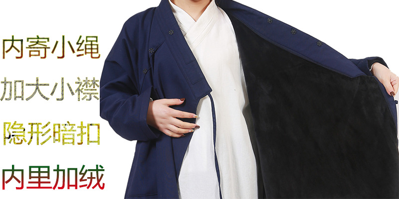 焌然武当秋冬加厚中长道袍三清领道服女加厚加绒练功服道士服装男