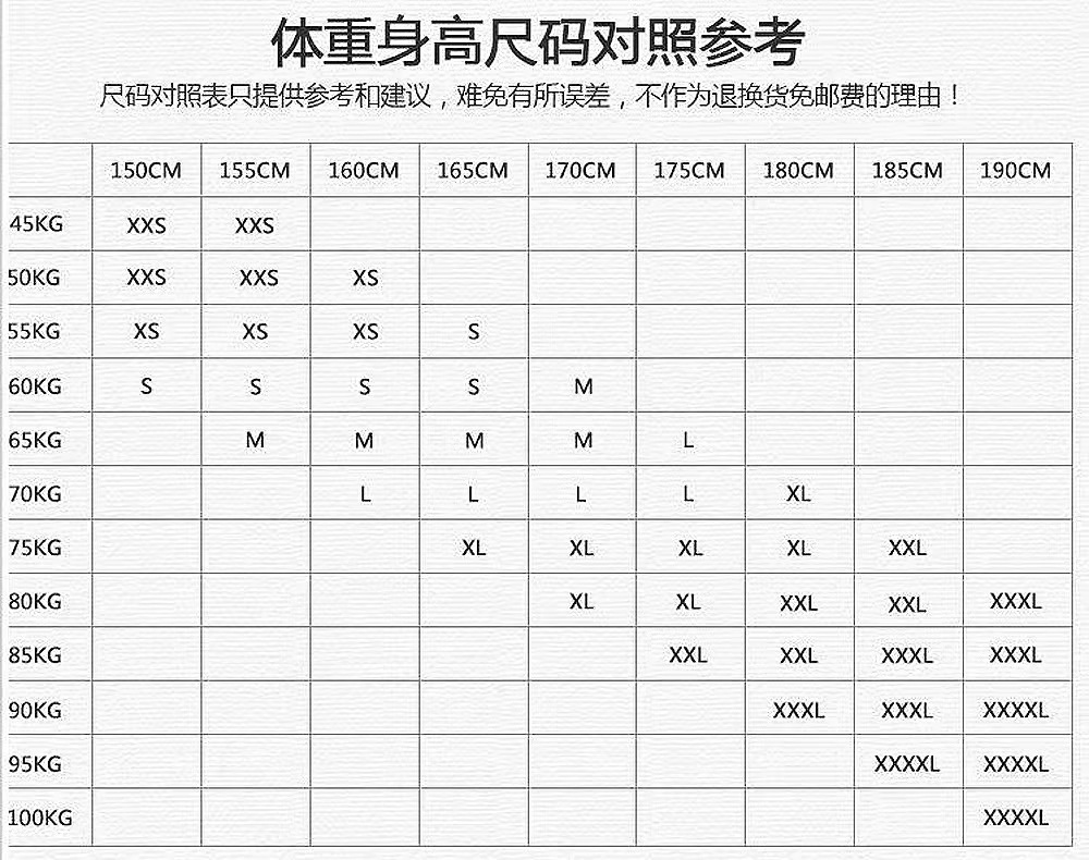 尺码 XXS,XS,S,M,L,XL,XXL,XXXL