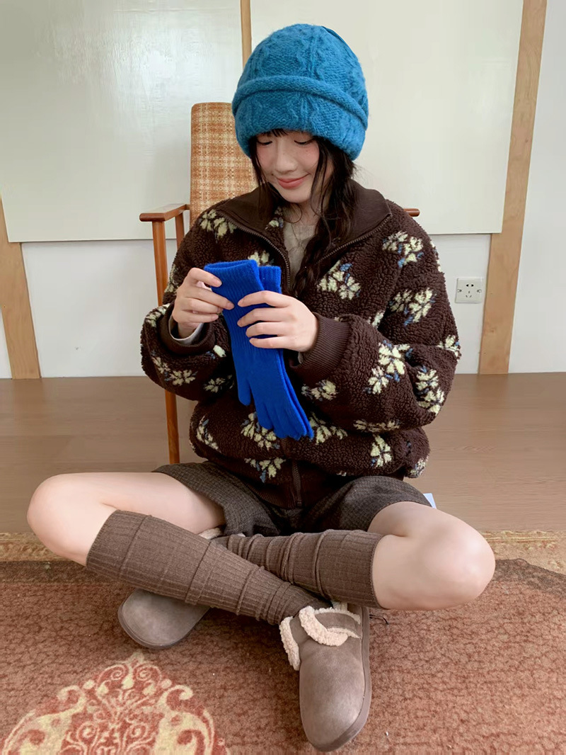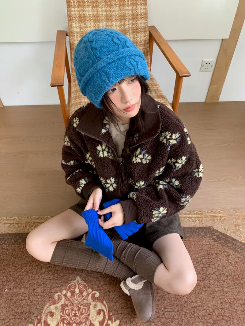 日系慵懒风手工钩花堆堆帽冬天卷边毛线帽氛围感休闲百搭包头冷帽