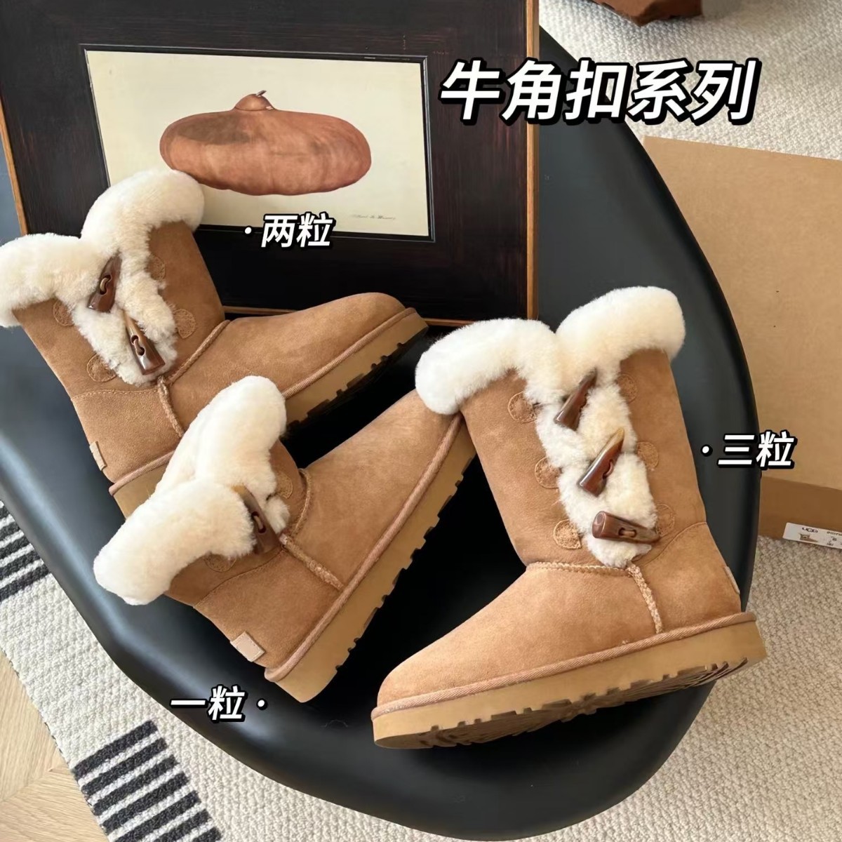 【河南桑坡】雪地靴羊皮毛一体雪地靴牛角扣三粒扣冬季新款羊毛雪