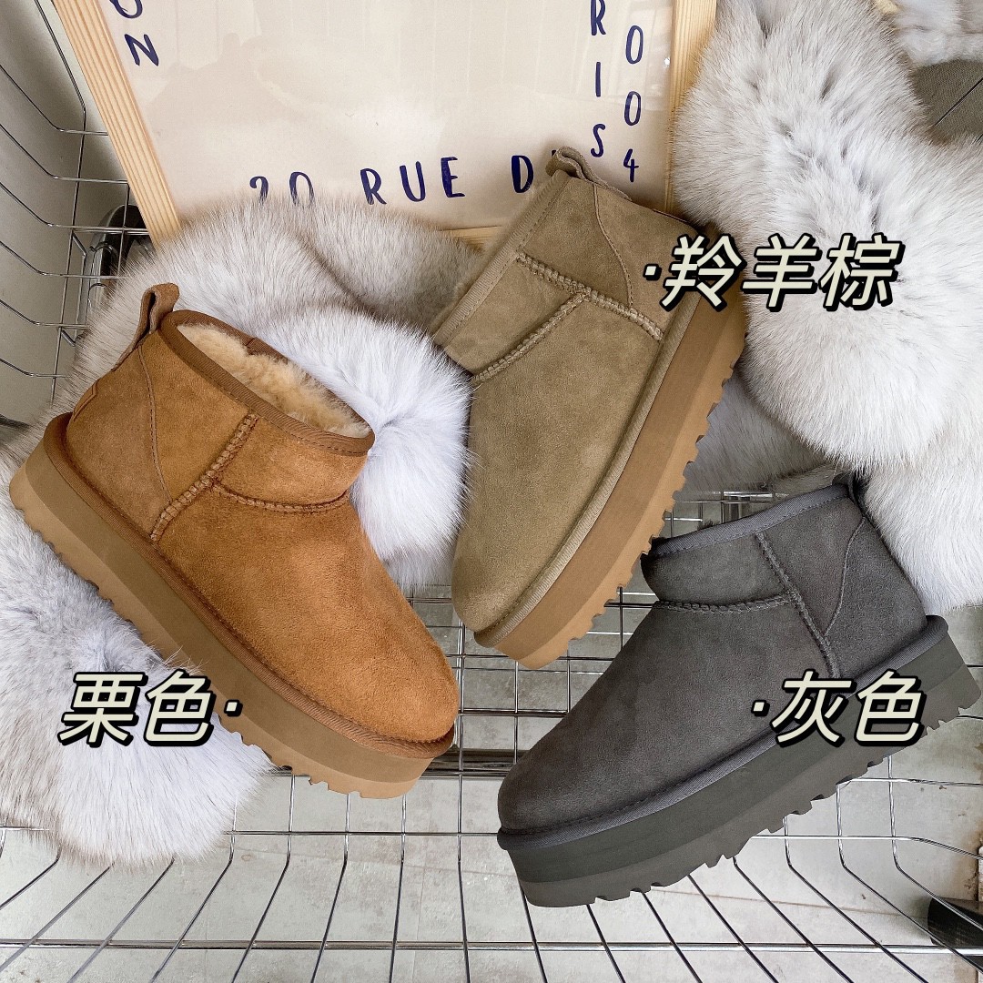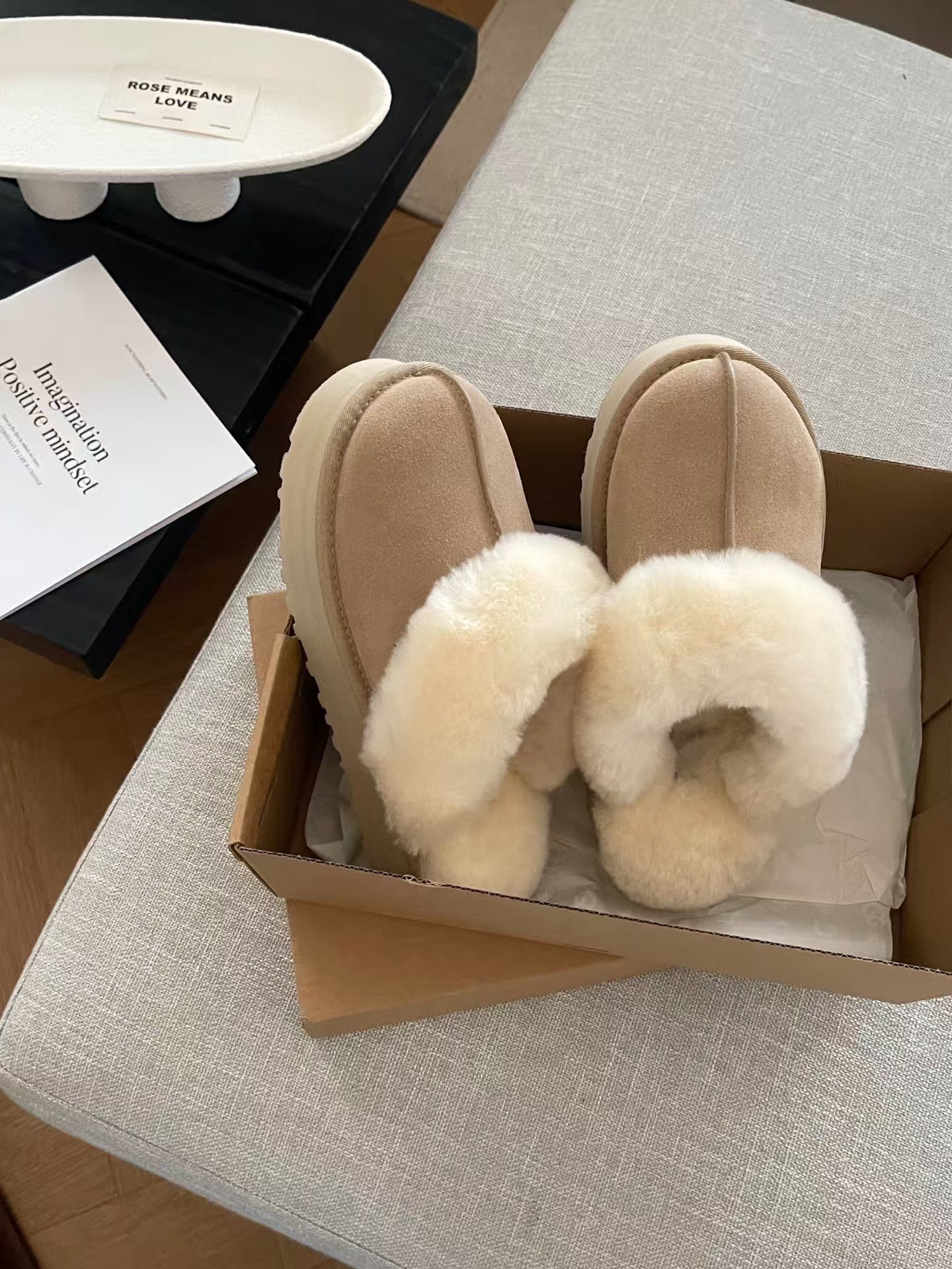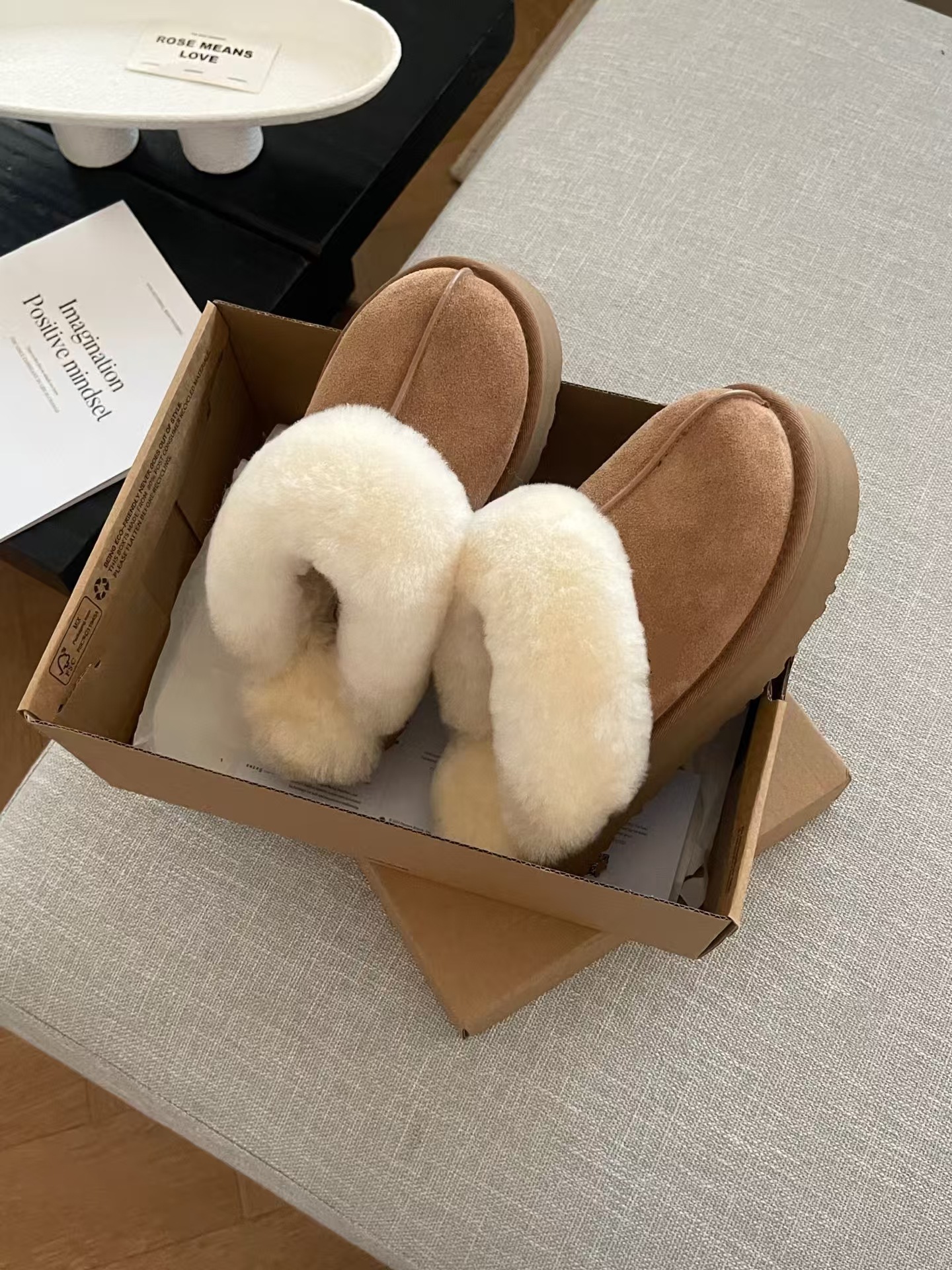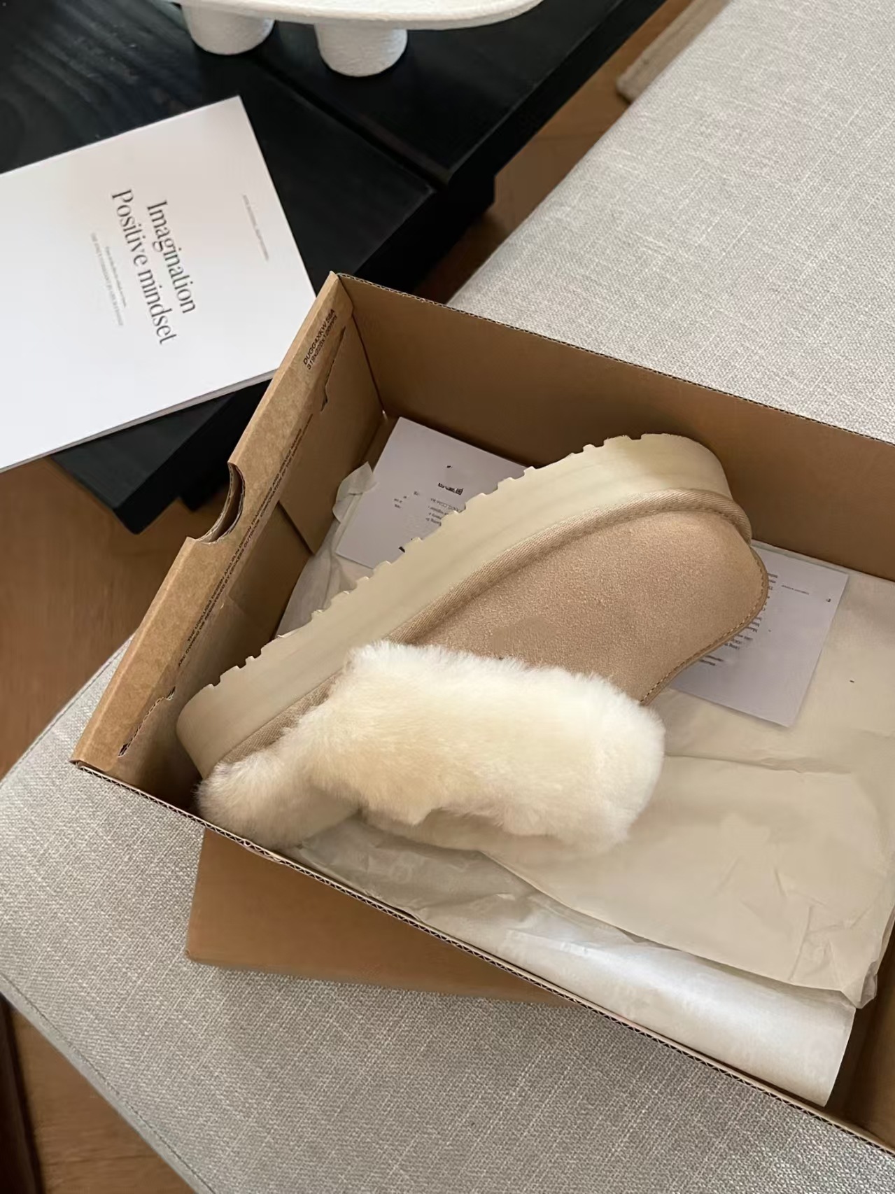 桑坡羊皮毛一体厚底mini雪地靴女冬季加绒加厚防寒保暖短筒棉鞋子