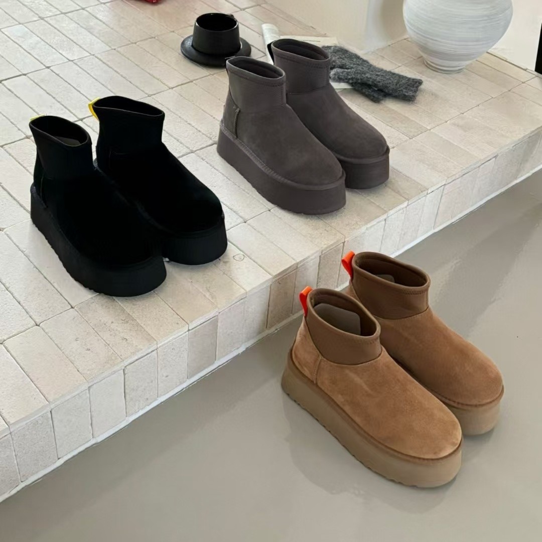 2025河南桑坡新款弹力袜筒迪普靴女冬厚底增高皮毛一体雪地靴
