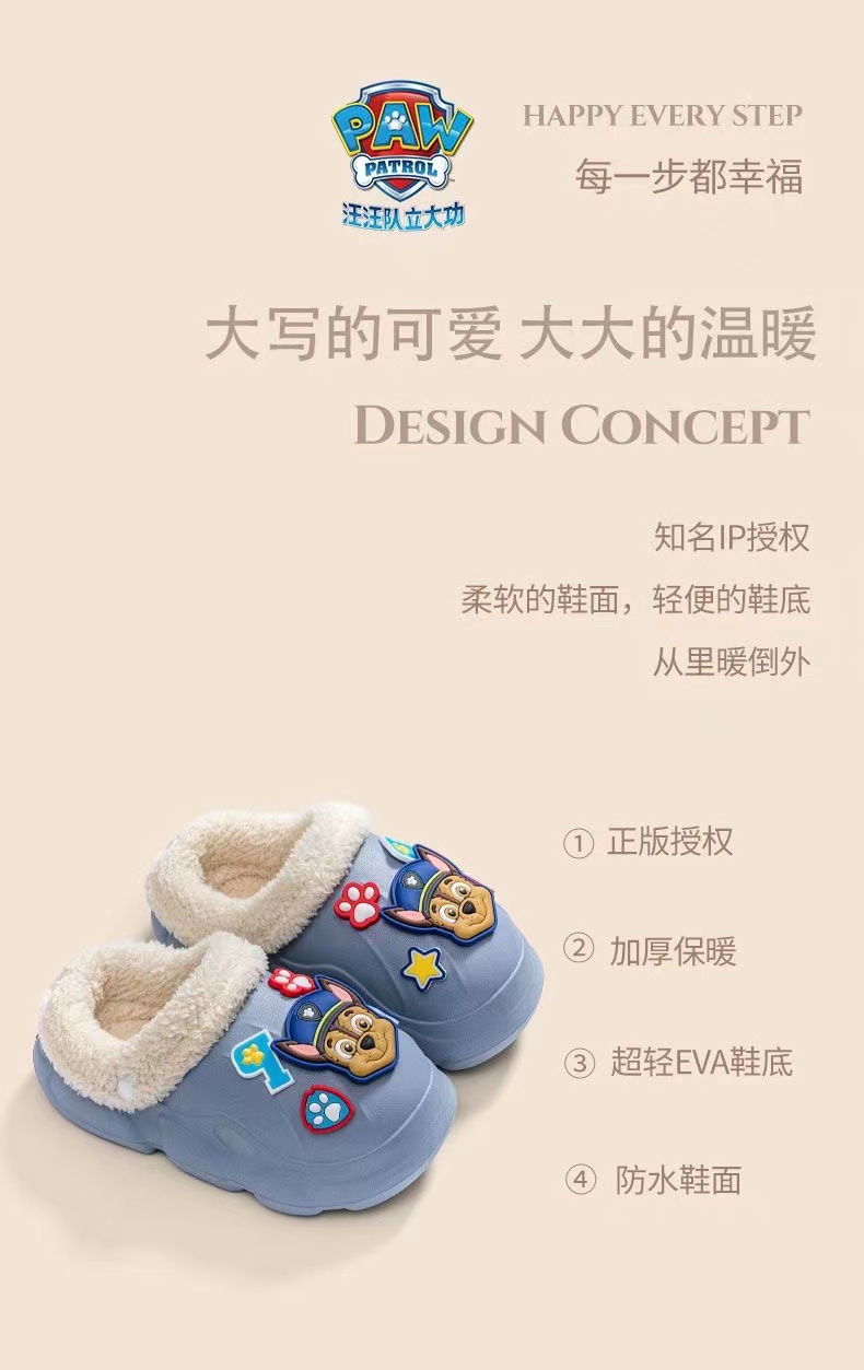汪汪队立大功儿童棉拖鞋冬男女童保暖加绒防水中小童宝宝包跟棉鞋