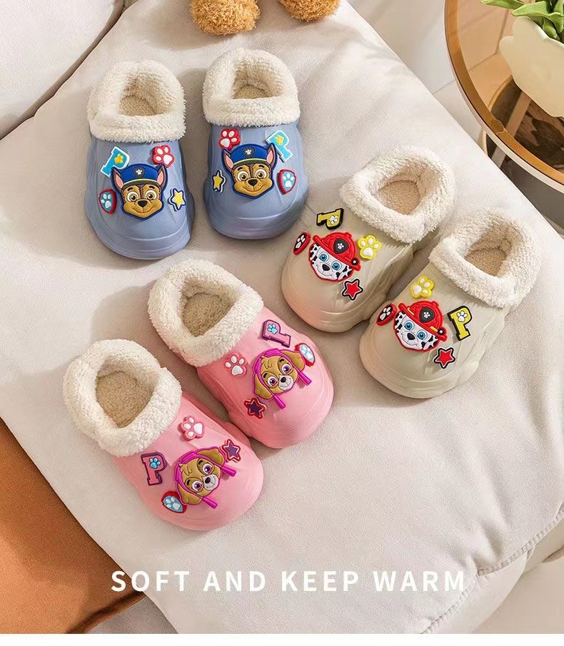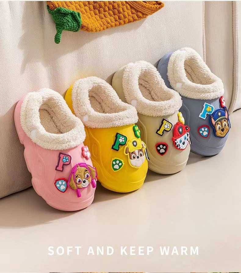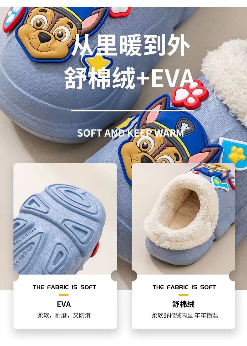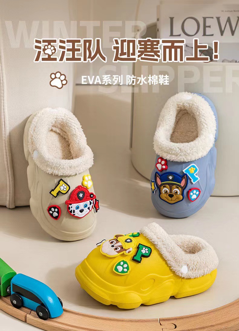 儿童棉拖鞋汪汪队冬天室内保暖男宝女宝防水防滑可拆卸亲子拖鞋